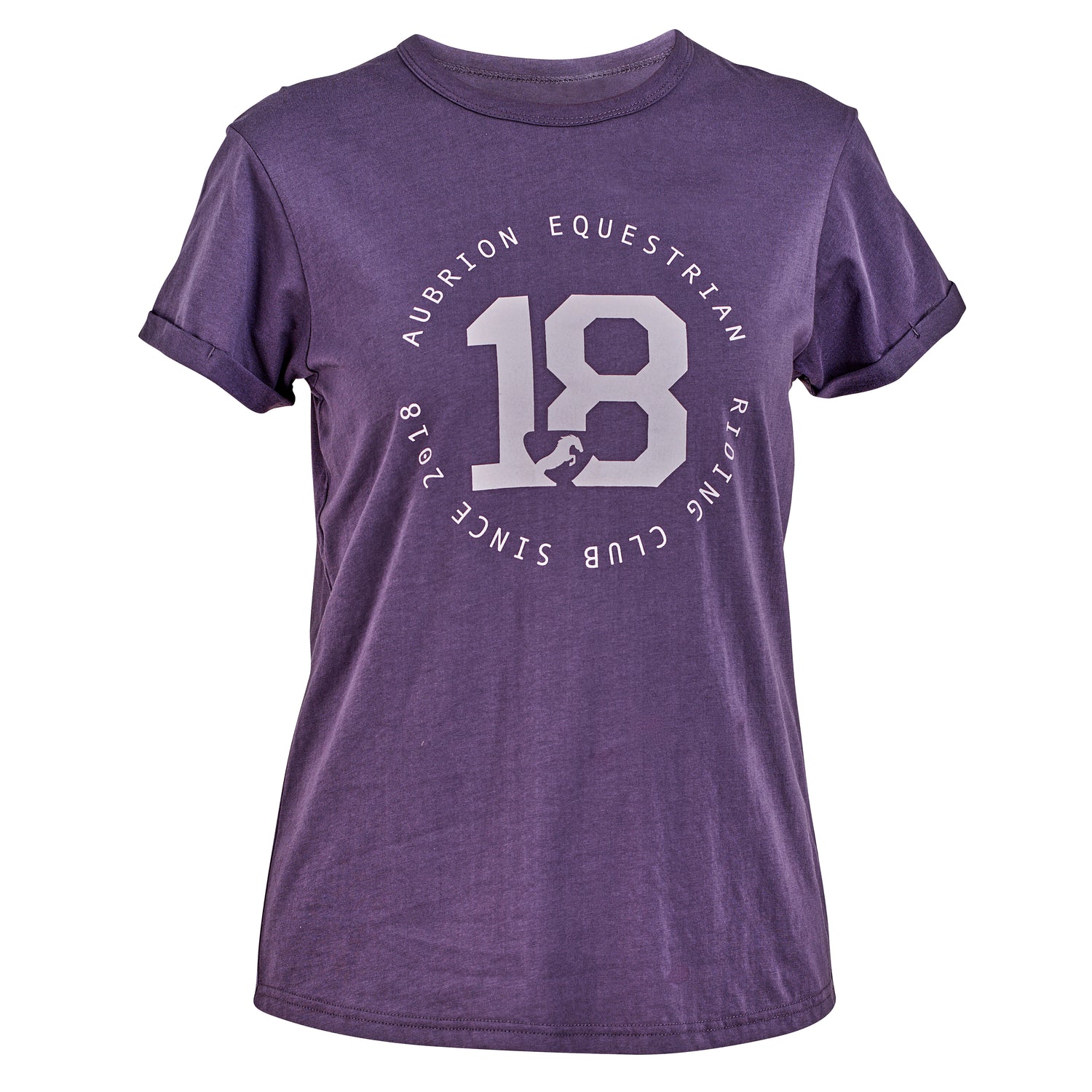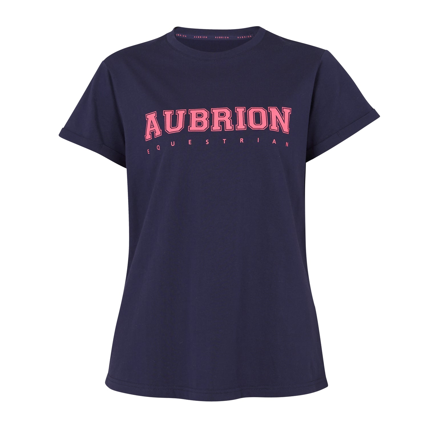 The Shires Aubrion Ladies Repose T-Shirt looks equally good paired with jeans or breeches. Styled for a casual look with a dipped hem and turn-up short sleeves, a satin inner neck binding and self-colour printed logo add interest.
