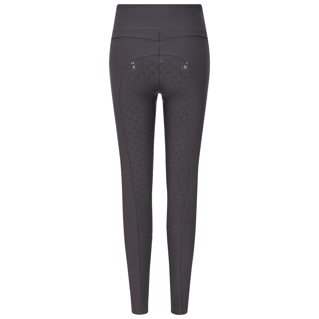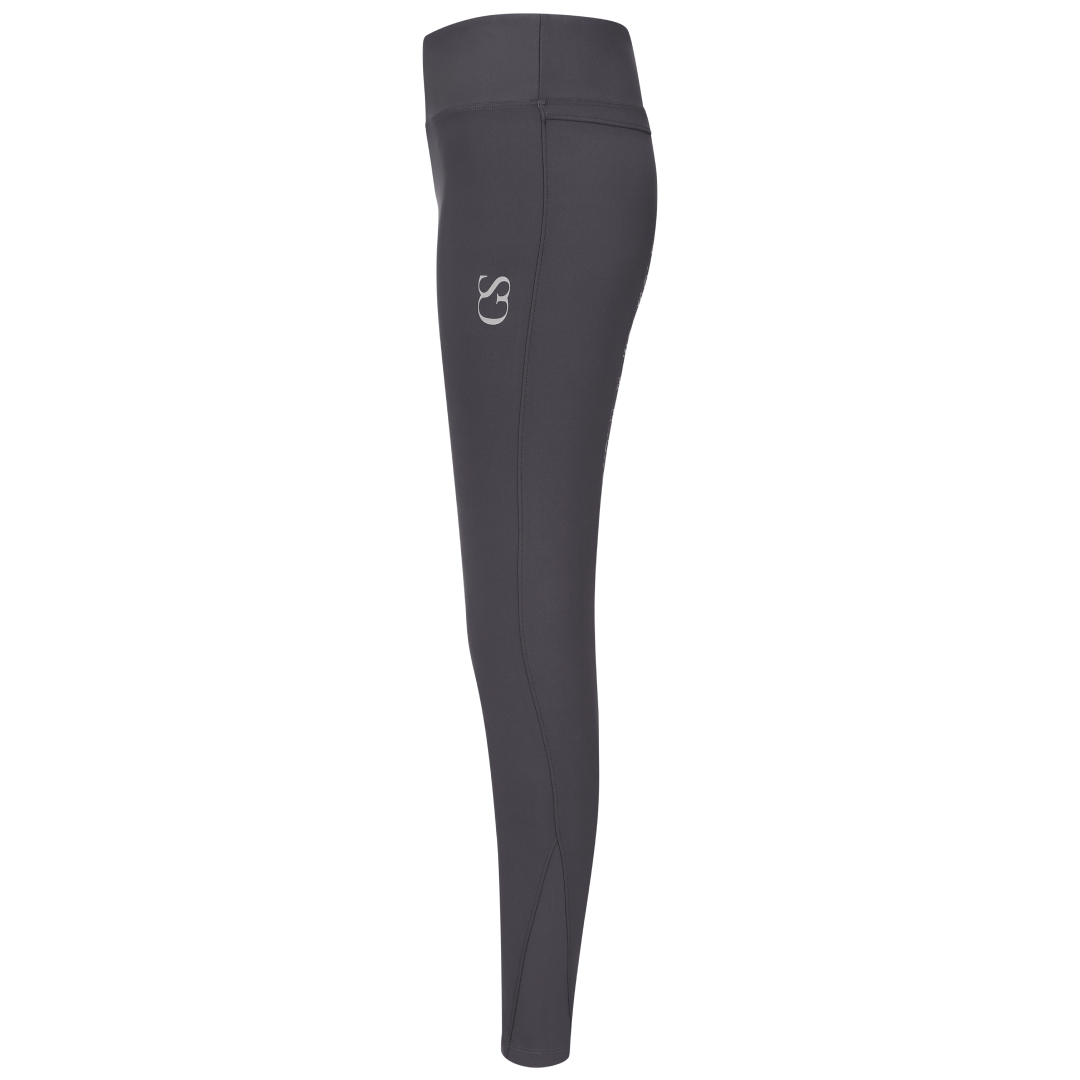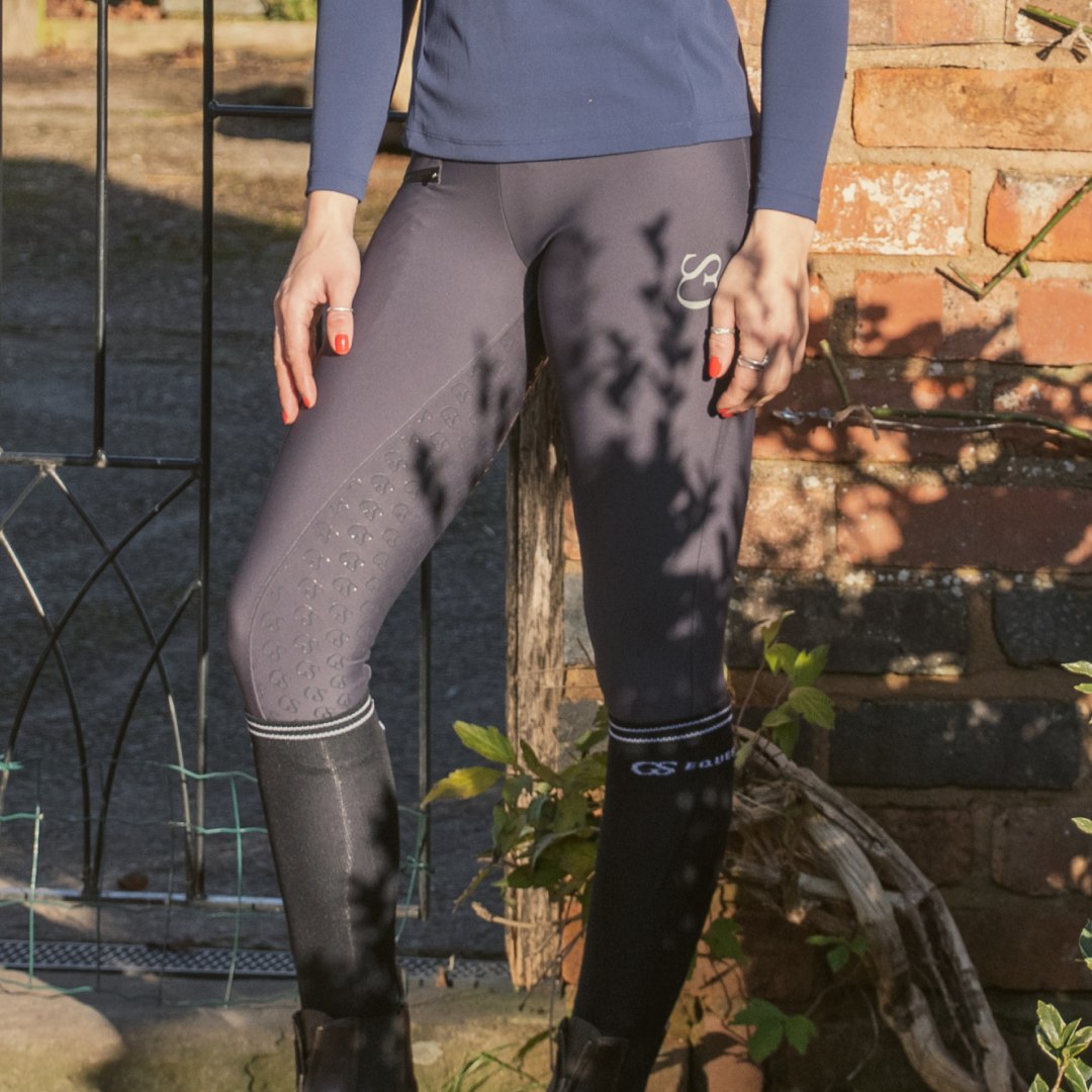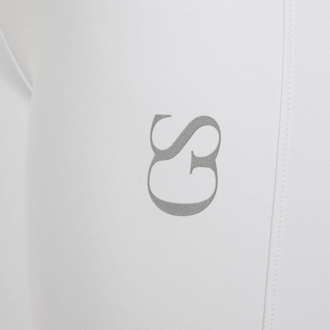 The 'GS' patterned silicone grip is new to the GS Equestrian range, and offers a stylish look, whilst also being effective. Being a full seat riding tight, the silicone is coloured as the same colour as the riding tights so that blends into the stylish design, as it covers a large proportion of the riding tights. In addition, there is a GS logo on the left leg, which has reflective hint to it.