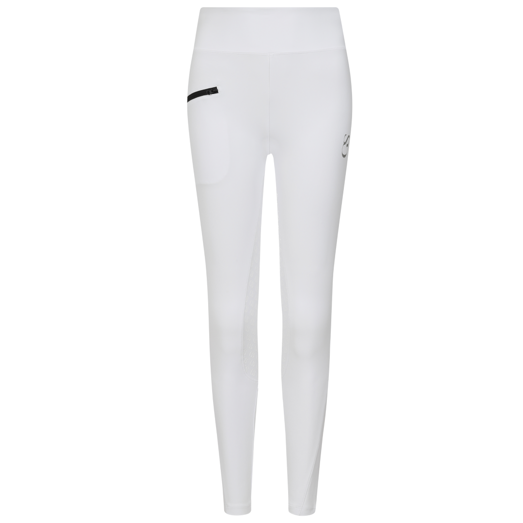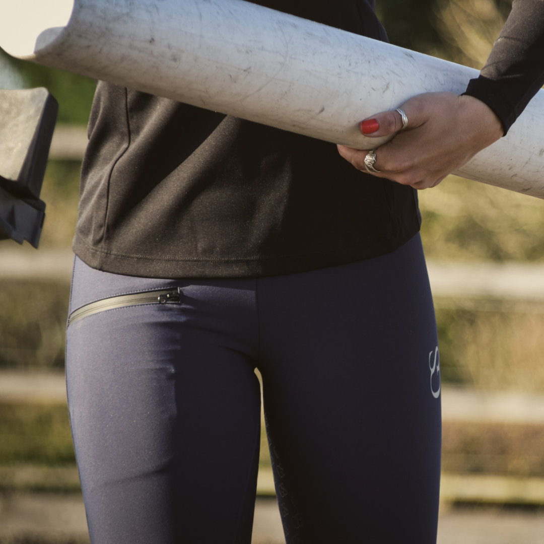 Featuring a large, zipped pocket on the right leg, these riding tights are practical, allowing you to store your phone as well as other necessary items, without the material being pulled down or stretched. In addition, the zip offers peace of mind whilst riding, that your possessions are safe. The zip has been designed so that it stands out as a feature, rather than just having a practical function, with it appearing black on all colour variations of this riding tight.