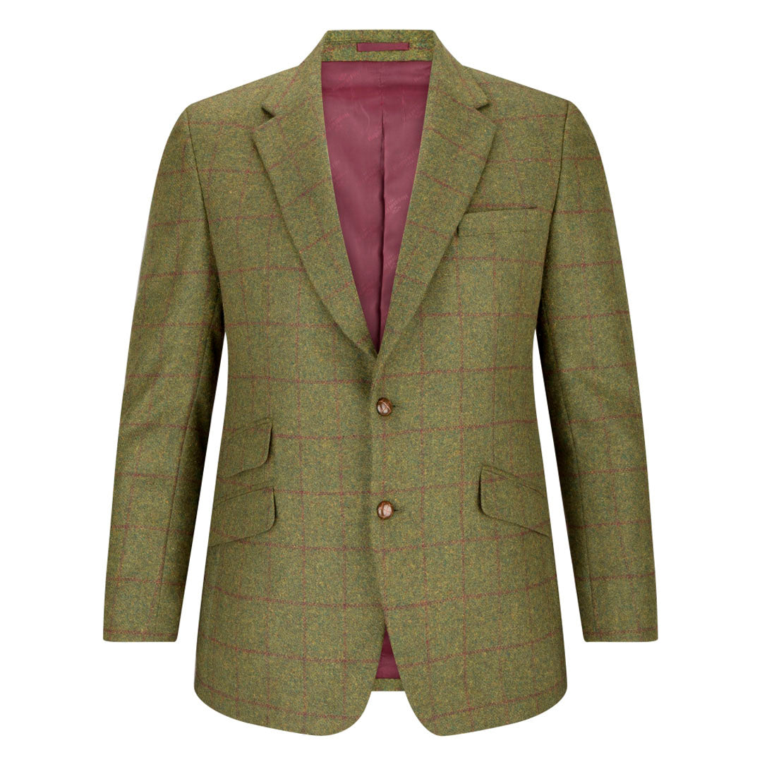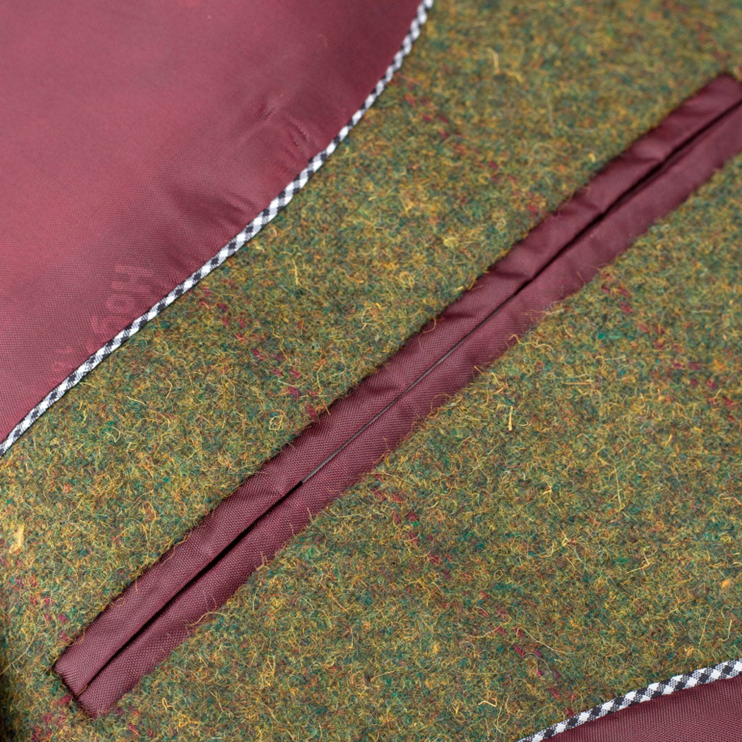 Superbly tailored with a classic two button front closure, as well as stylish ticket pocket. The striking wine statin lining has been designed to compliment the subtle check pattern, which has been woven in to the marled olive tweed outer layer, for an incredible country look, that will keep you looking smart all day!