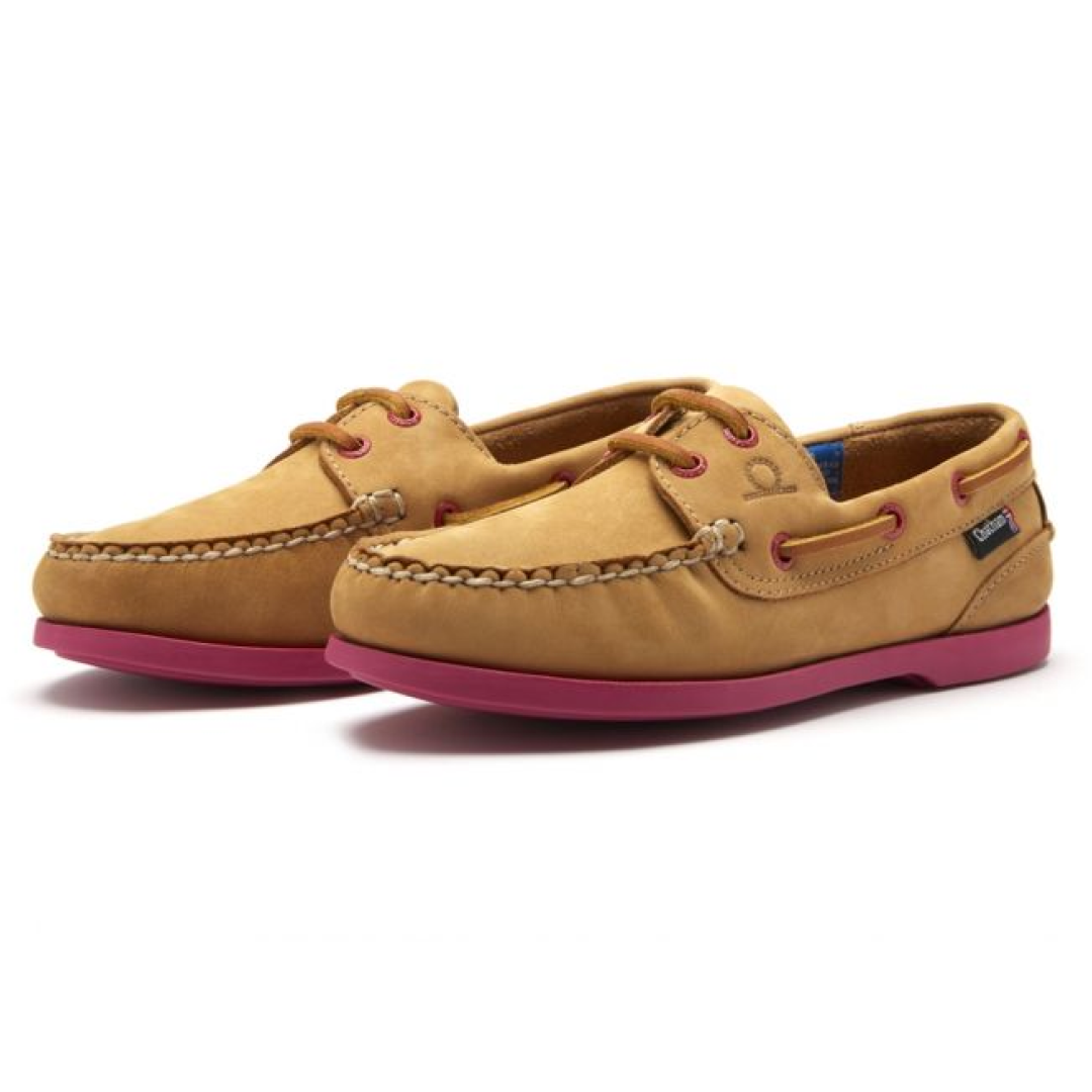 The Chatham Pippa II G2 sits in the bestselling G2 collection and is a stylish lace up boat shoe with a colourful, modern twist. A hand stitched, moccasin-constructed deck shoe, Pippa II is crafted from premium, washable tan leather with a non-slip pink rubber sole, rust-proof eyelets and rot proof thread. This contemporary classic also features new sole spring poron performance cushioning, which is anti-bacterial and offers maximum comfort and shock absorption, and as part of the durable G2 collection, benefits from a unique 2-year manufacturer's guarantee.