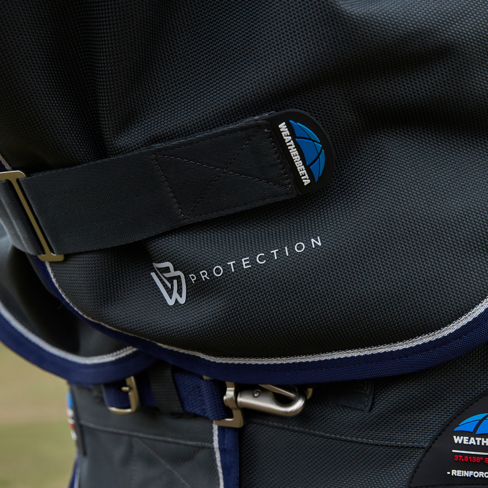 Give your horse the ultimate combination of protection, comfort and style with the WeatherBeeta ComFiTec Ultra Turnout Detach-A-Neck 220g. Designed for all-weather conditions, this rug offers exceptional durability and an outstanding fit thanks to its 1800 denier outer shell and advanced waterproof Teflon EcoElite™ coating.