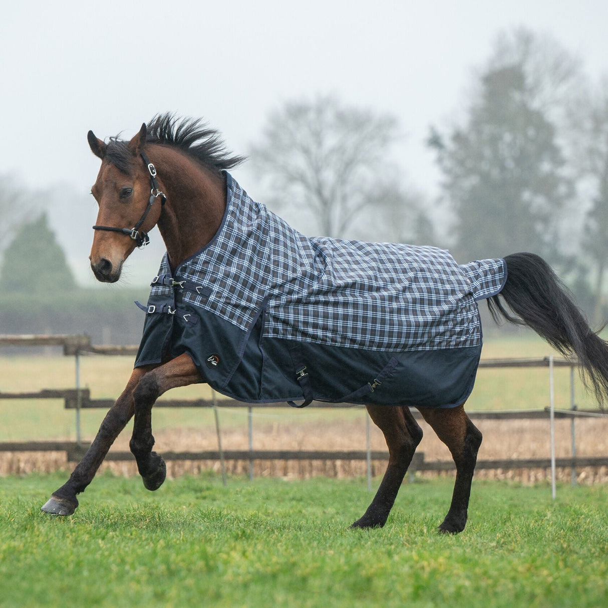 HKM 1200D Fleece Lined Highneck Rug -Glasgow- - Deep Blue Check / 5'3 is backordered and will ship as soon as it is back in stock.