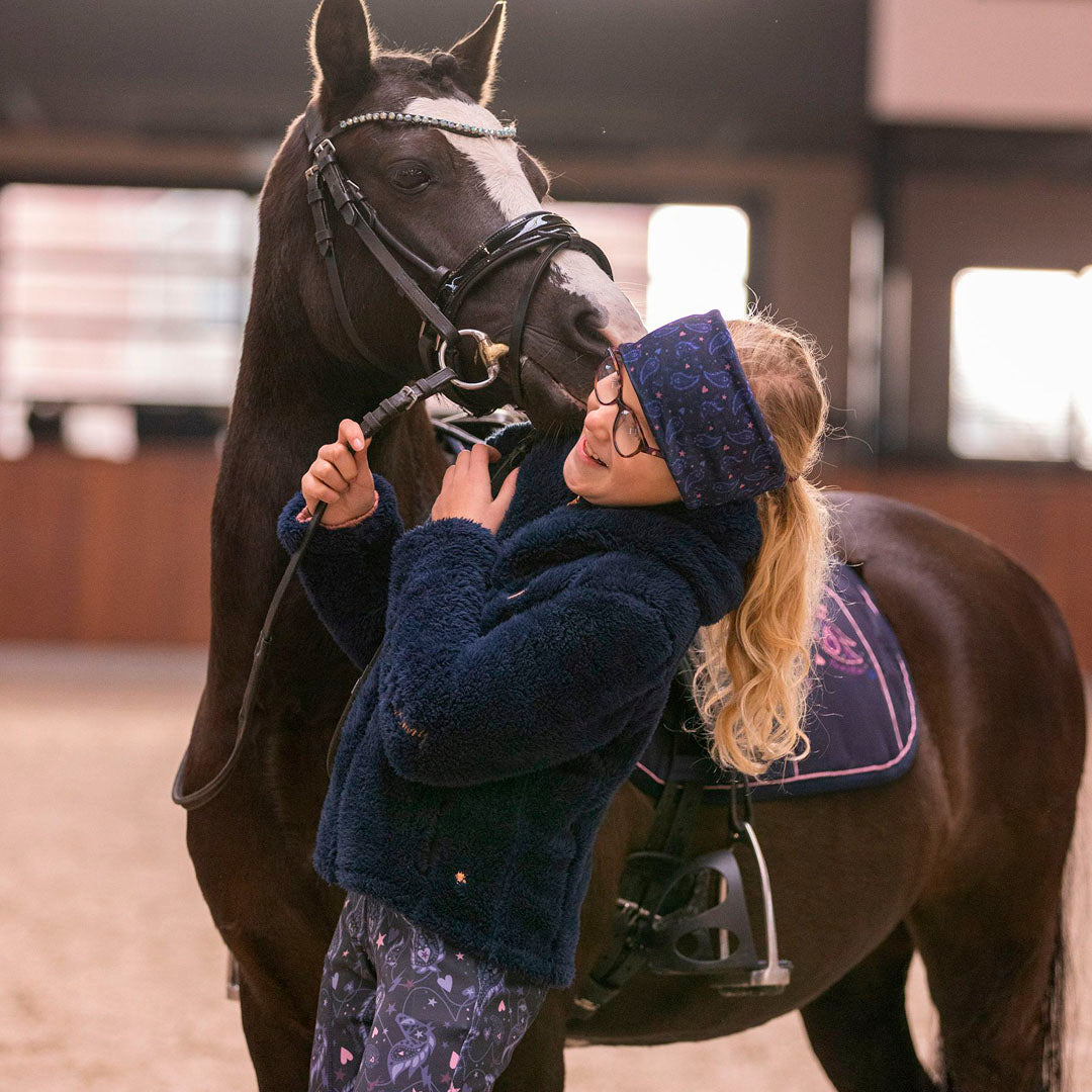 Made with a luxuriously soft fleece, with a generous hood. This cosy jacket has the added benefit of elasticated hem and cuffs to hold your jacket in place, helping to keep that cold weather out, allowing you to enjoy your day with your pony no matter the weather.