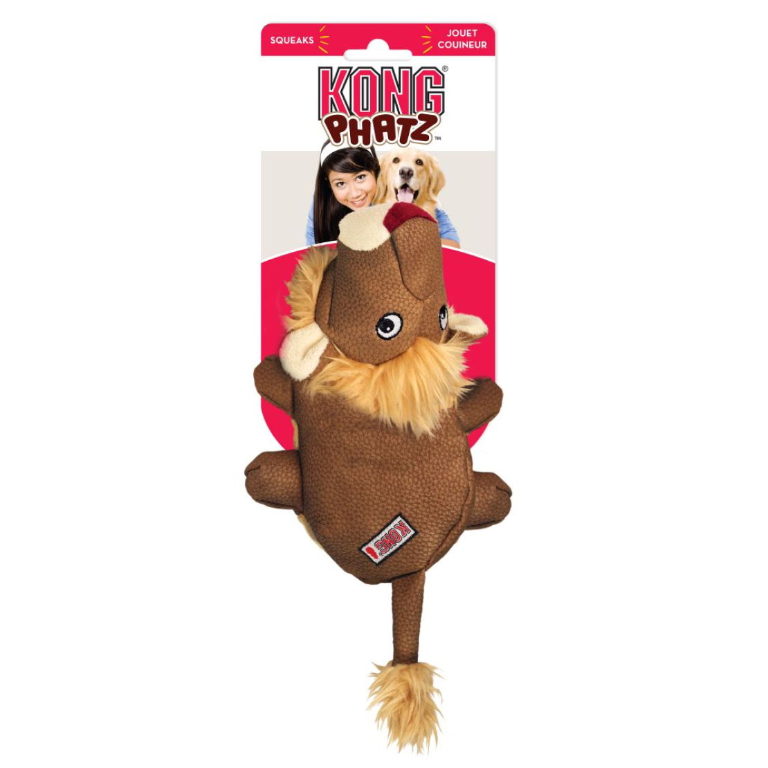 KONG Phatz boast a unique texture and innovative material for chewing time fun. Reinforced construction for durability extends play session while the low-tone squeaker peaks curiosity by adding sound variety and excitement. These adorable critters are sure to engage dogs and please pet parents.