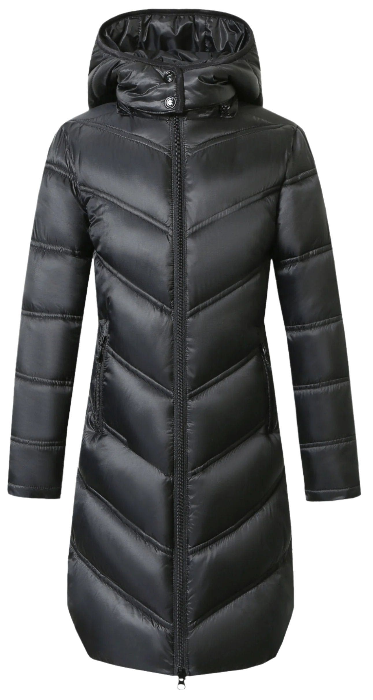 The Covalliero Children's Padded Coat features luxurious padding for optimal temperature and moisture management. The detachable hood can be secured with a button and easily removed with a zip fastener. It also includes a riding slit with buttons, two convenient handwarmer pockets with zippers, and is water-repellent with a 2-way zip. Plus, it is machine washable at 30 °C for easy maintenance.