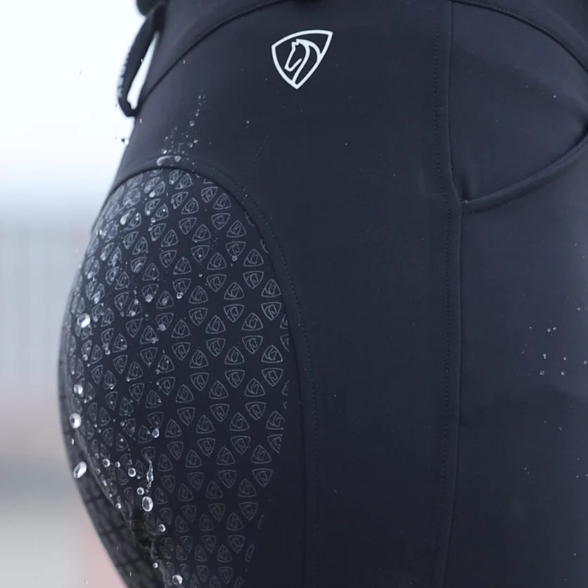 Designed for riders who refuse to let the weather hold them back, the EQUIDRY 'Bex' Waterproof Riding Breeches combine comfort and performance in one essential piece. Crafted from durable, waterproof fabric with a soft brushed backing, they provide dependable protection against the elements while maintaining a premium feel.
