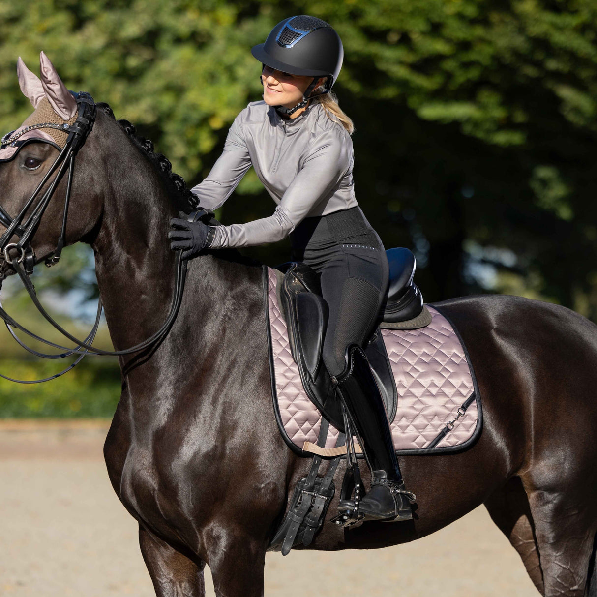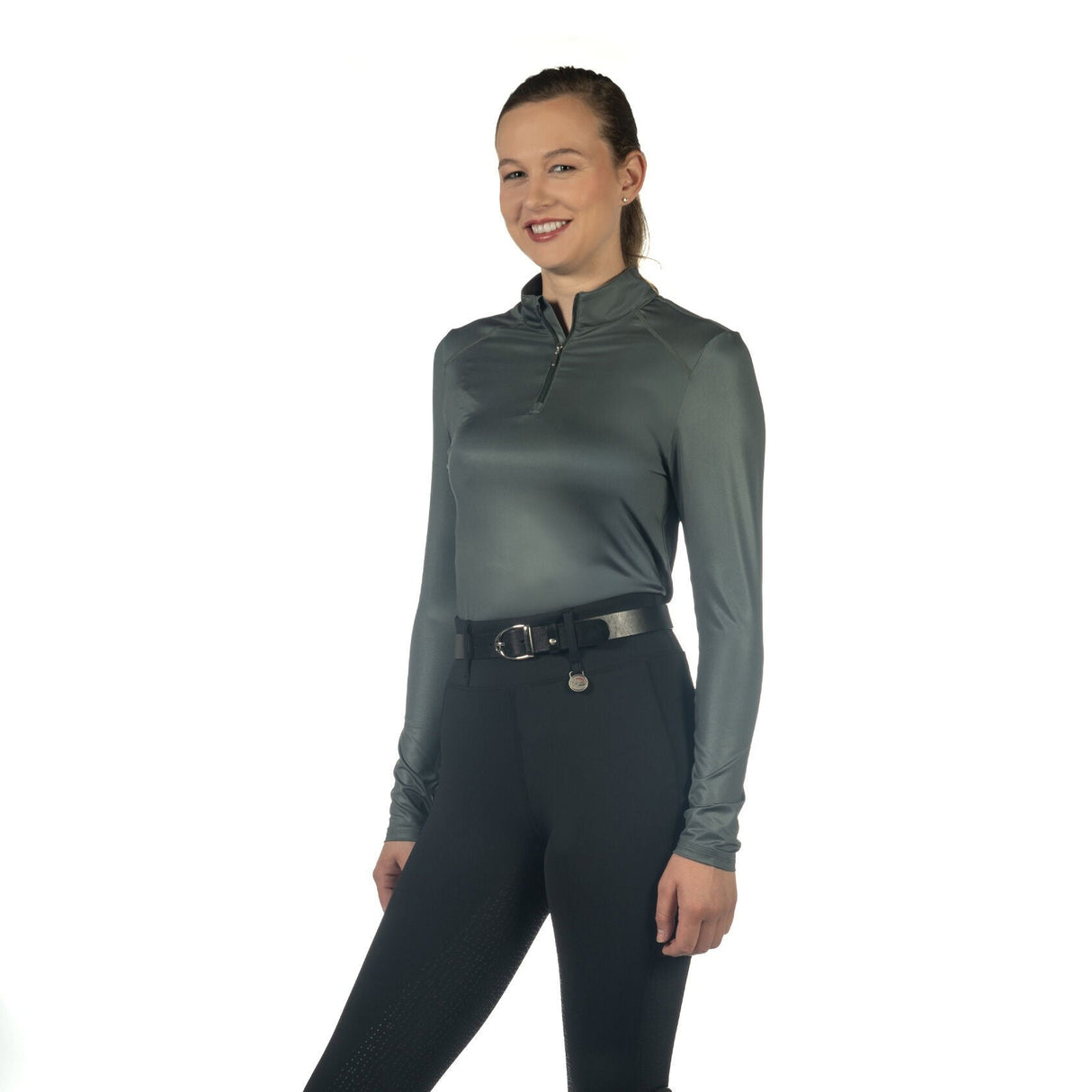The HKM Ladies Functional Shirt -Summer Milano II- offers the perfect combination of comfort, functionality, and style for active female riders. With breathable and elasticated material, it provides optimum freedom of movement and a feminine fit. The practical zip on the stand-up collar makes it easy to put on and take off, while the silky feel adds a touch of luxury. Available in various colors.