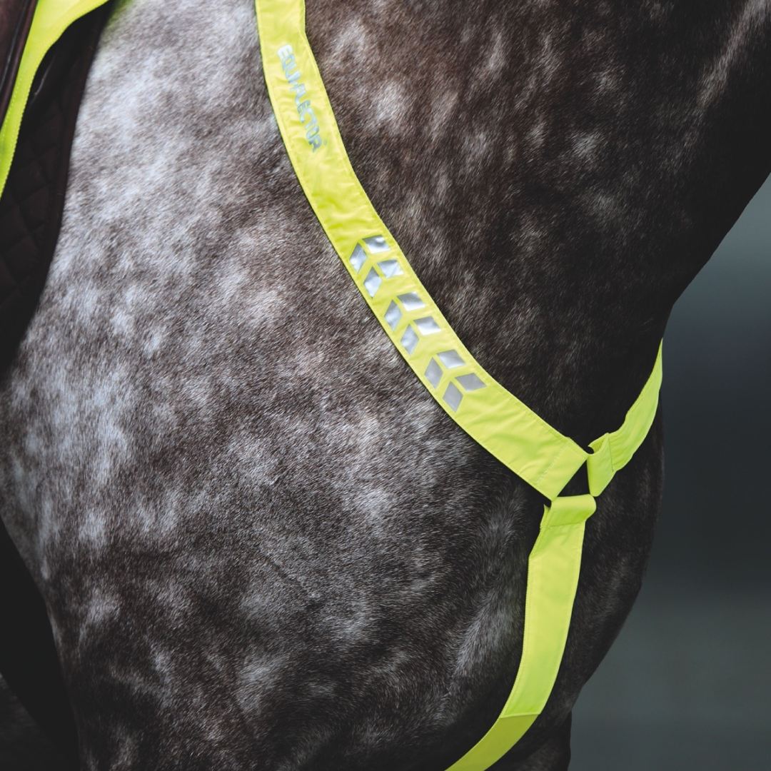 Das Vorderzeug EQUI-FLECTOR ist eine großartige Möglichkeit, Ihnen und Ihrem Pferd dabei zu helfen, gesehen zu werden, sei es bei schlechten Lichtverhältnissen oder wenn Sie auf der Straße unterwegs sind.