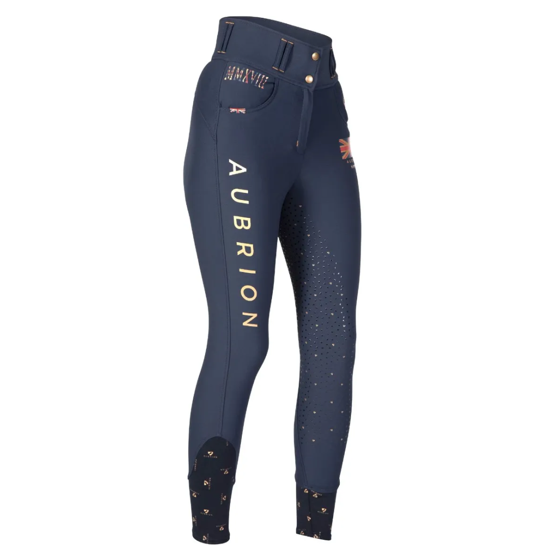 Elegante Reithose in den Farben des Aubrion-Teams. Die Shires Aubrion Team Mädchen-Reithose bietet ultimativen Komfort, hervorragenden Halt und unvergleichlichen Stil im Sattel. Das Detail: hohe Taille, Gürtelschlaufen, Doppelknöpfe, Gesäßtaschen, Hosenschlitz mit Reißverschluss, vollständig aus Silikon gefertigte Gesäß- und Beinabschlüsse, elegante Trockenbündchen, Aubrion-Team-Embleme.