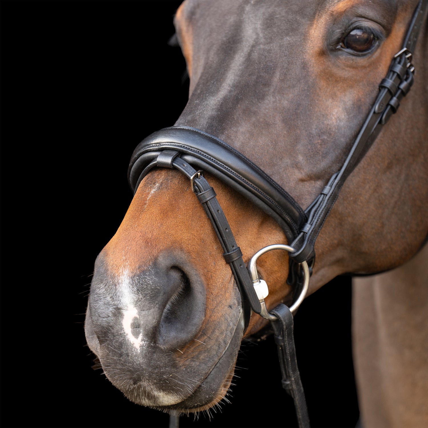 Experience unbeatable comfort and style with the Imperial Riding Snaffle Bridle. Adorned with small rhinestones, the browband adds a touch of elegance. The English noseband closure and removable flash strap ensure a secure fit without any rolling back. Perfect for any equestrian enthusiast.