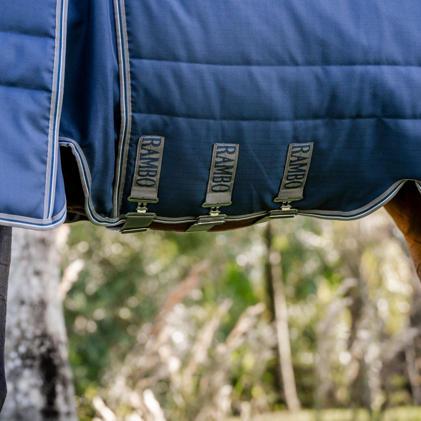 Horseware Ireland Rambo Optimo Stalldecke, mittelgroß, 200 g - Marineblau/Burgunderrot/Blaugrün / 5'9 ist auf Lager und wird versandt, sobald es wieder verfügbar ist