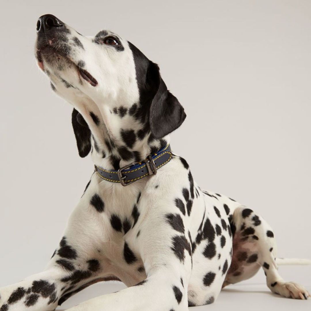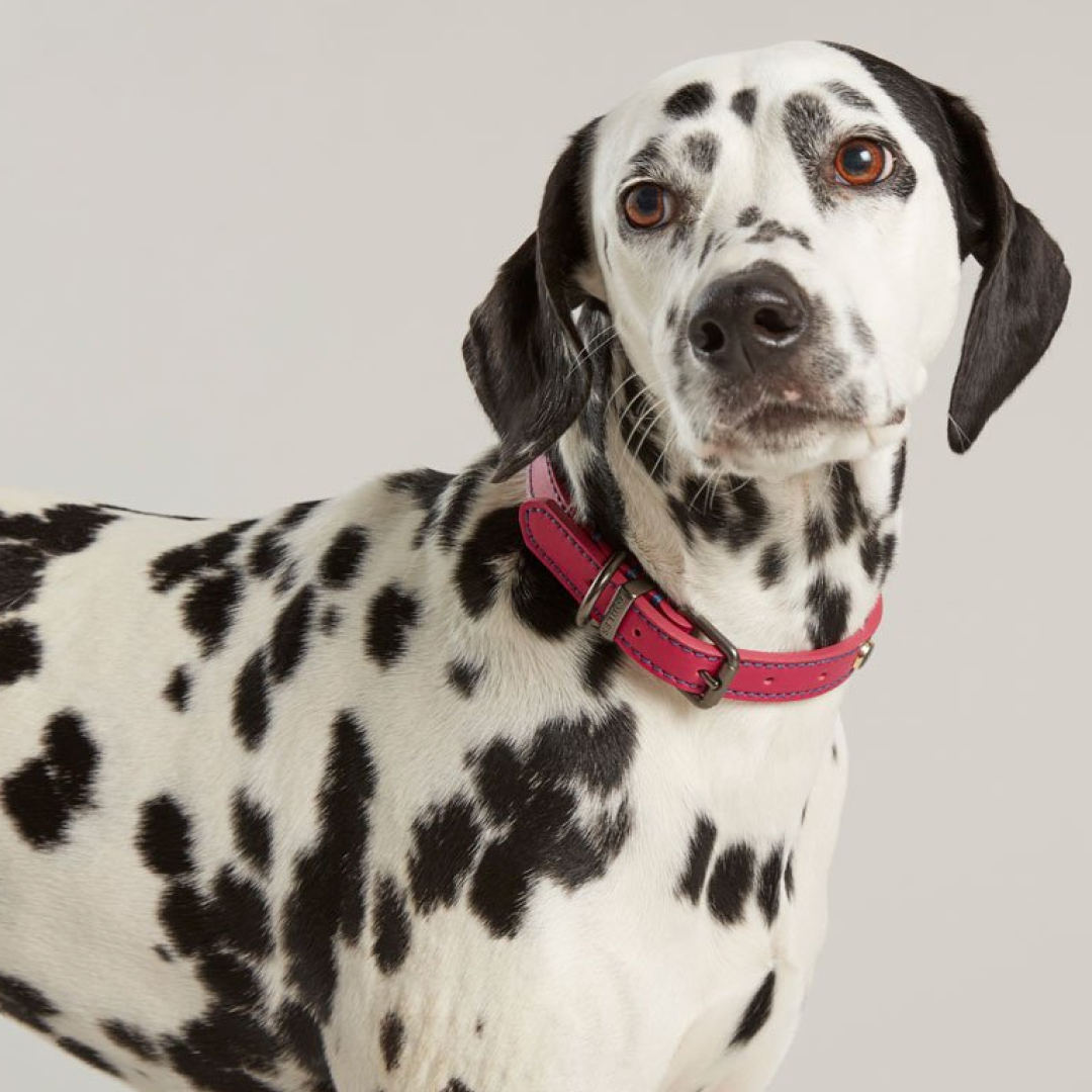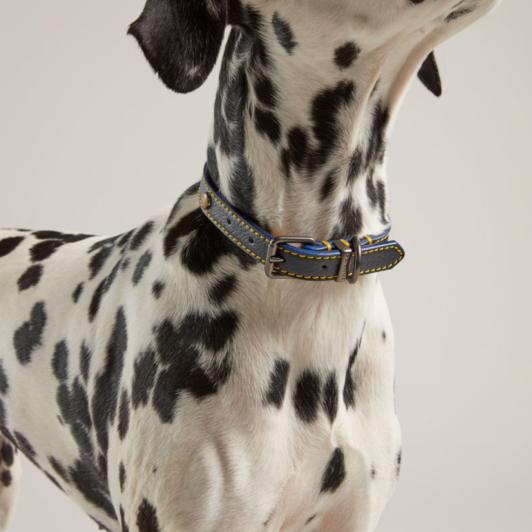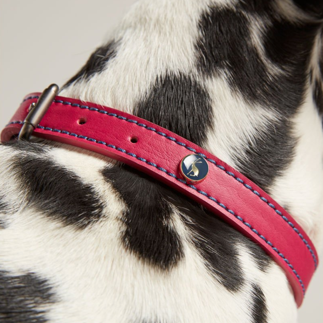 Dieses bequeme und langlebige Hundehalsband aus strapazierfähigem Leder ist in vier Größen mit passender Leine erhältlich und mit dekorativen Joules-Verzierungen versehen.