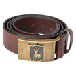 Der Gürtel ist stilvoll mit einer mattgoldenen Schnalle und einem geprägten Deerhunter-Branding versehen.