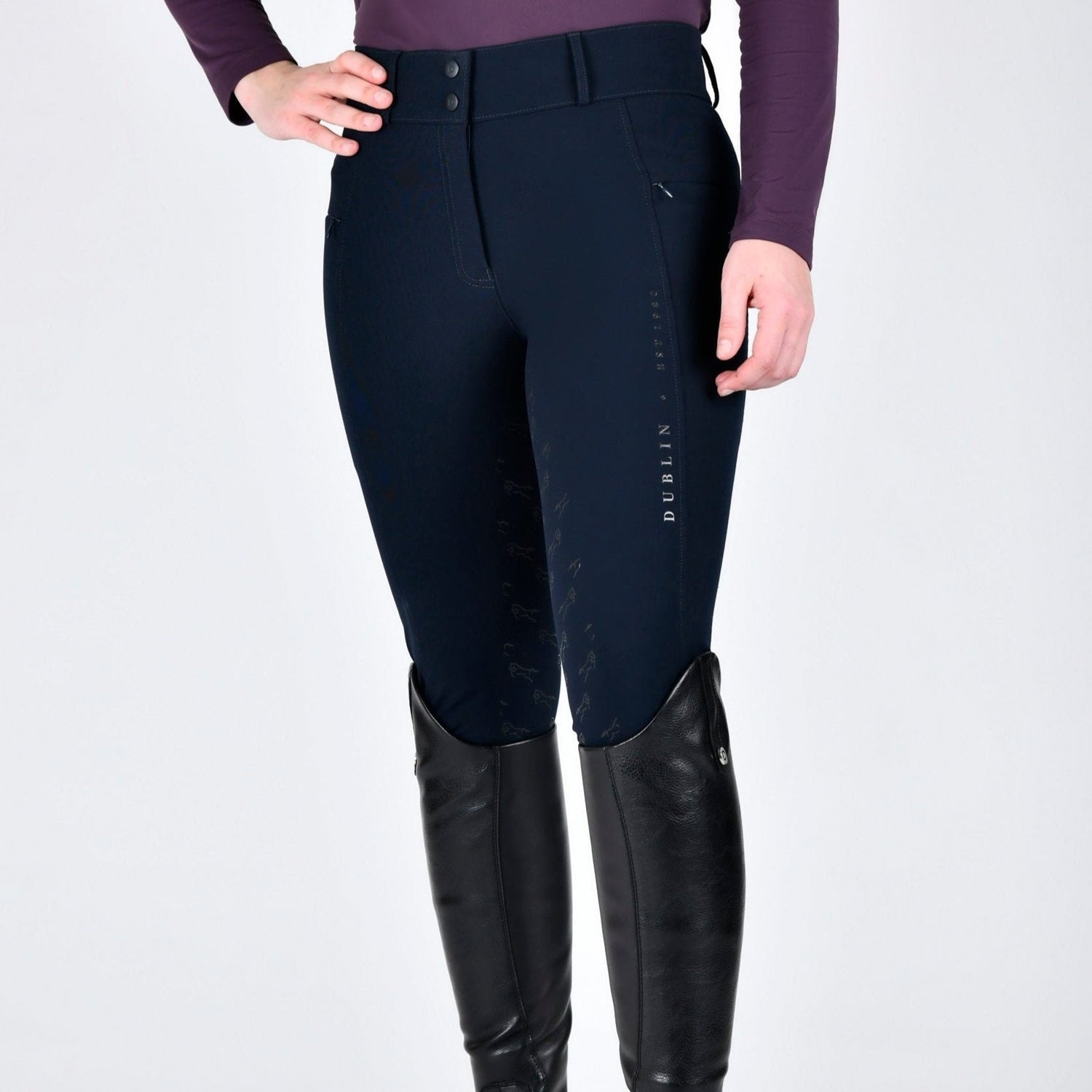 The Dublin Thermal Riding Breeches are an essential to keep you warm and clean on the cold days this winter. Made from a thermal brushed back four way stretch fabric designed to keep you warm and comfortable all day. The outer of the fabric is splash proof to repel dirt, dust, hair and hay so you can remain clean and smart even on those damp days after grooming and mucking out. The full gel seat is designed to give you extra stability whilst training or hacking, while the mid-rise elasticated waistband offers security and comfort as well as featuring belt loops and front fly zip with hook and bar closure for ease. These winter horse riding breeches have a high stretch knit panel at the lower leg for a smooth and comfortable fit under your chaps/gaiters or inside your boots. Keep your phone safe in one of the side pockets with zip closure.
