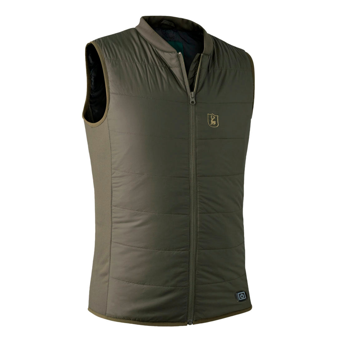 Die Heat Herren-Innenweste von Deerhunter ist mit einem integrierten HEAT-System ausgestattet, das mit einem einzigen Klick auf der linken Seite der Weste aktiviert wird.