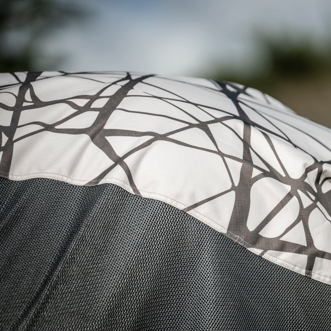- Basierend auf diesem Prinzip haben wir ein maßgeschneidertes monochromatisches Muster erstellt, das speziell dafür entwickelt wurde, Pferde vor lästigen Insekten und Fliegen zu schützen.