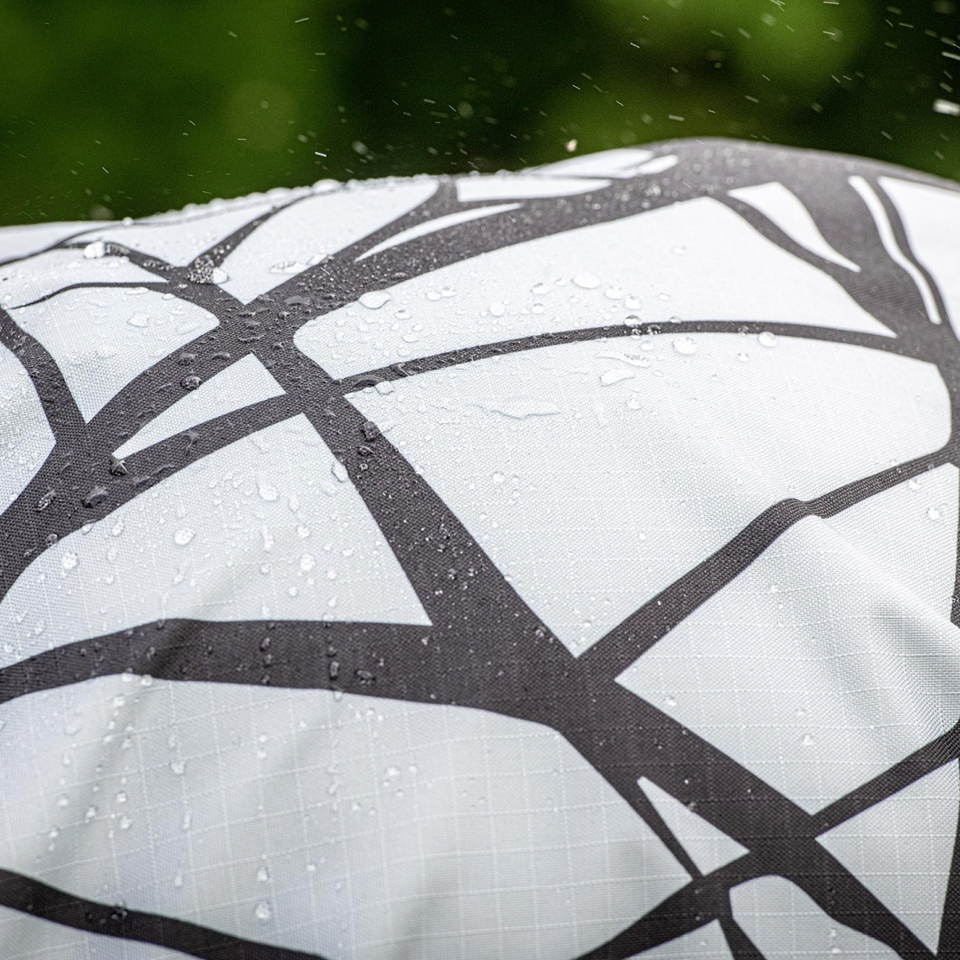 - Der einzigartige Druck ist vom Muster eines Fliegenflügels inspiriert. Die geschichteten schwarzen Linien auf grauem Hintergrund erzeugen eine optische Täuschung im Auge einer Fliege.