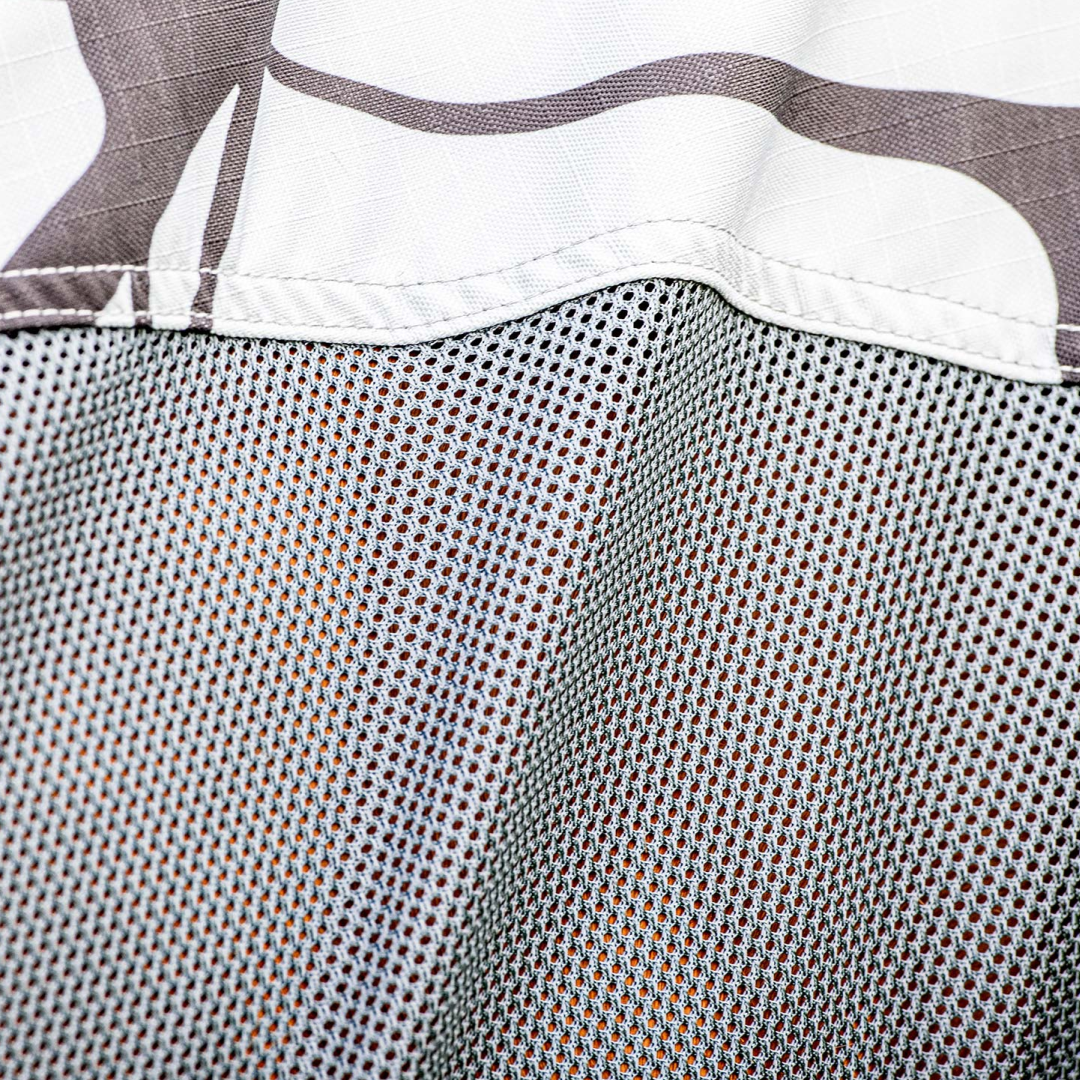 - Hybridkonstruktion mit Polyester-Mesh-Seiten. Bietet maximale Atmungsaktivität, um Überhitzung zu vermeiden.