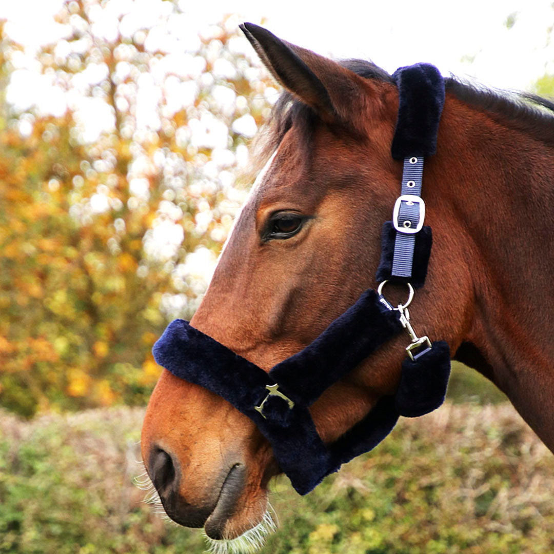 Dieses Super-Halsband aus Fab-Fleece von Hy Equestrian sorgt dank des luxuriös weichen Fleecefutters am Genick, an den Backenstücken und am Nasenriemen garantiert dafür, dass sich Ihr Pferd wohlfühlt .