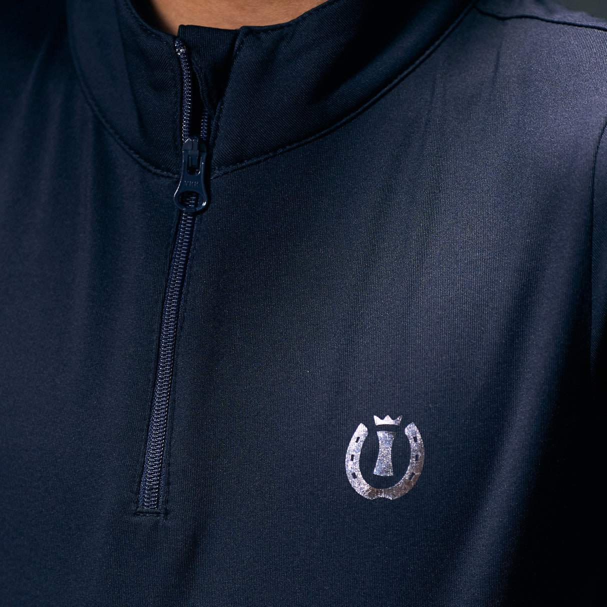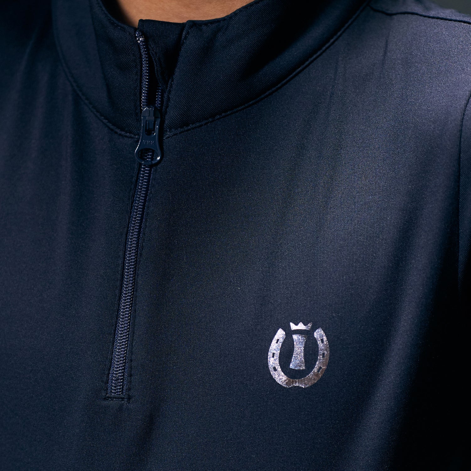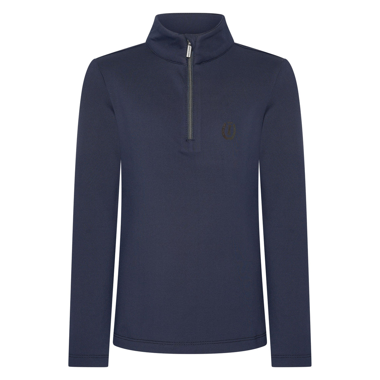 Introducing the Imperial Riding Children's James Top - a half zip, long-sleeved top perfect for chilly rides. With a chin protector at the top of the zipper and stretchable fabric brushed on the inside, this top provides both comfort and protection. Complete with a logo print at the right chest.