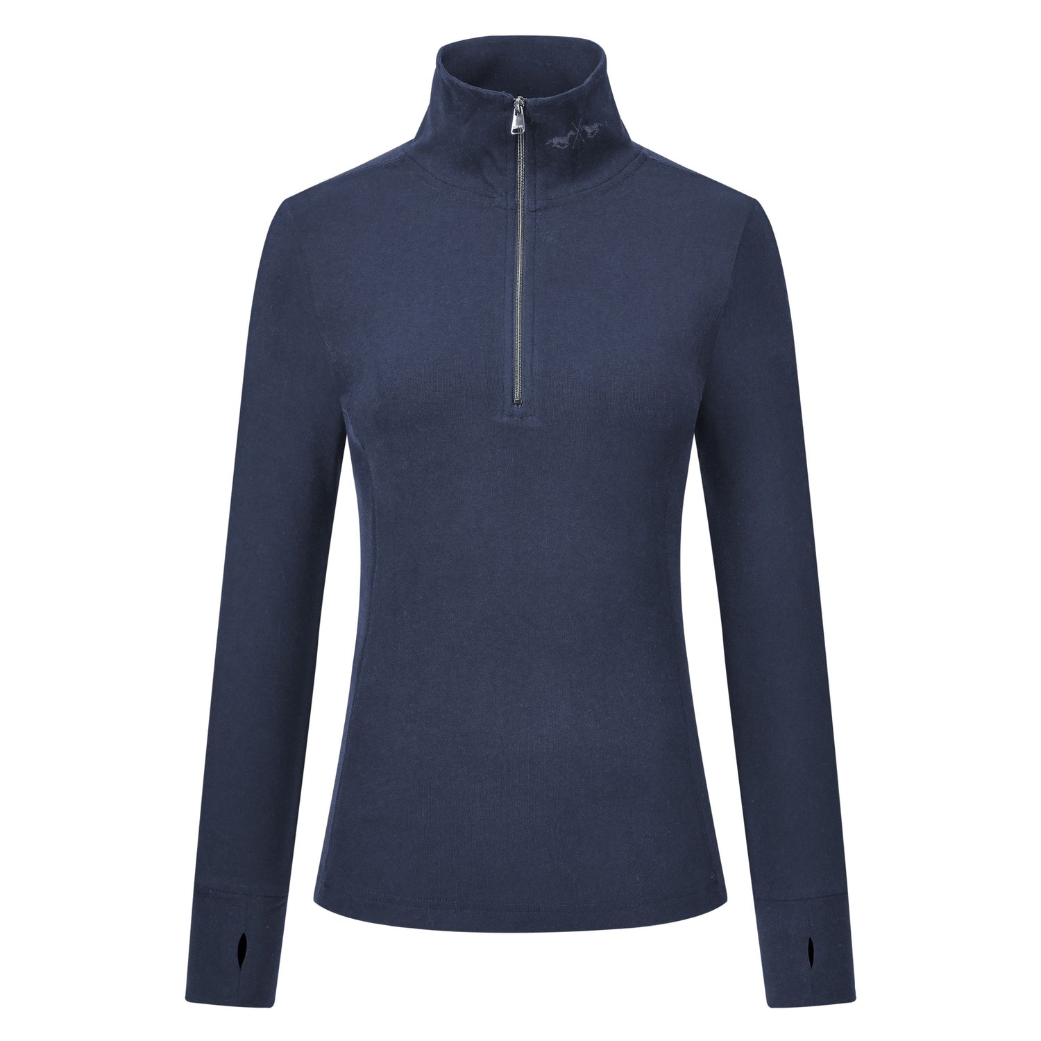 This high neck turtle top features a zip closure and overlock stitch on the seams for durability. Adorned with a horses logo in dotted metallic print at the chest and HV Polo text in metallic on both sleeves, this top is both fashionable and functional.