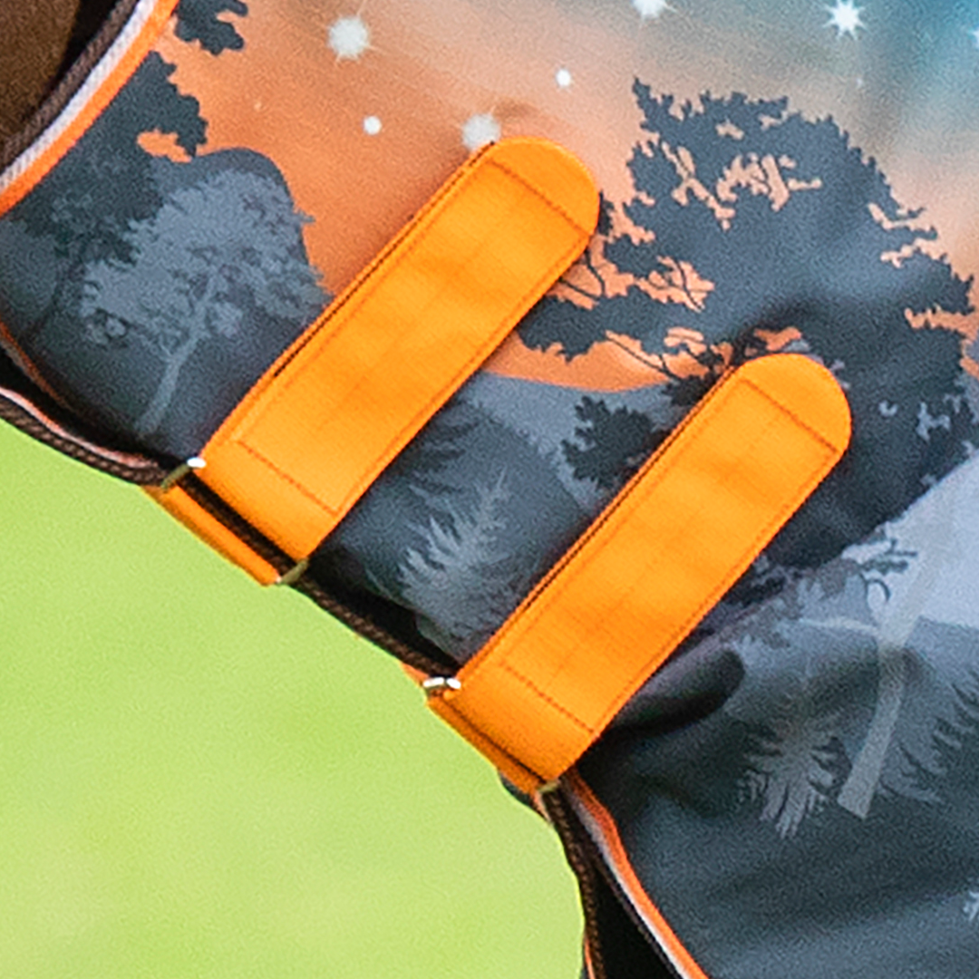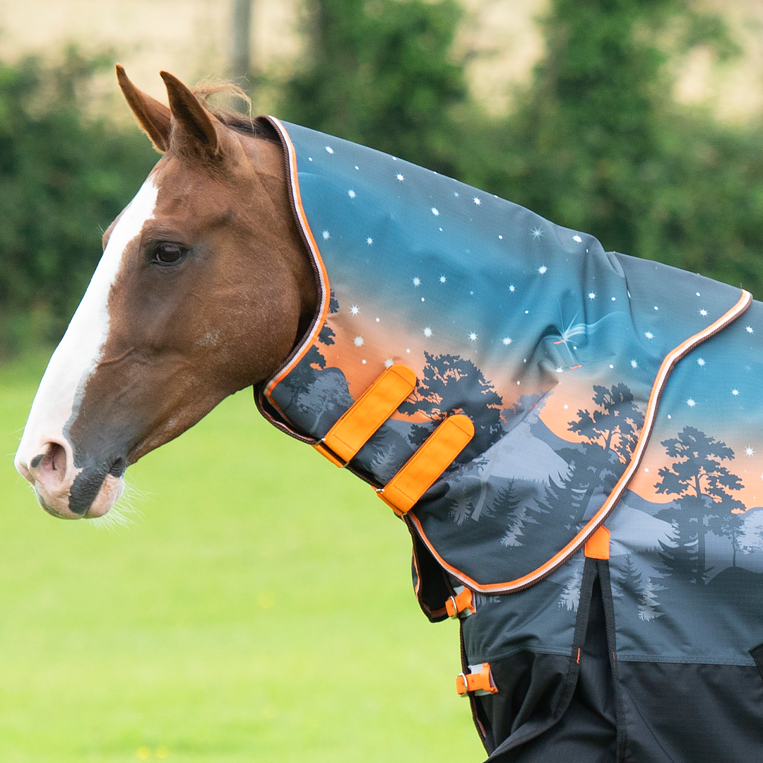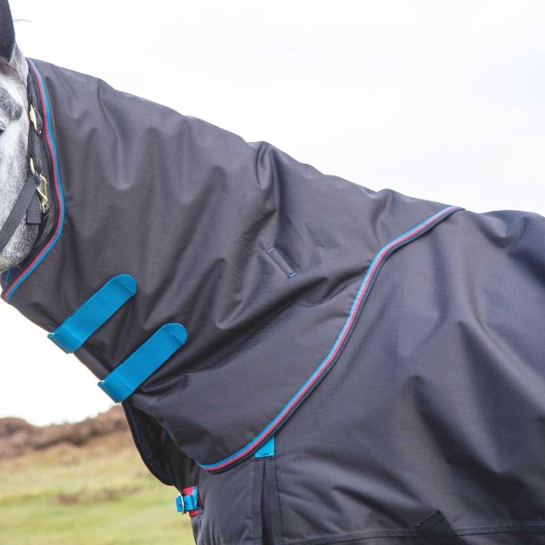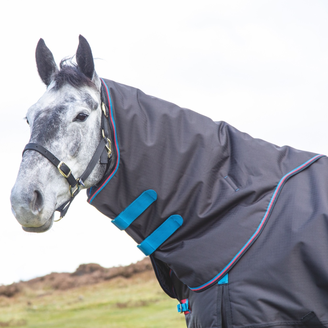 Ausgestattet mit strapazierfähigem ShireTex® 600D, einer vollständig wasserdichten Ripstop-Außenschicht und einer warmen, aber atmungsaktiven 200-g-Polyfüllung. Dieser Hals kann ganz einfach an Ihrer Pferdedecke befestigt werden, indem Sie einfach die sicheren Klettverschlüsse durch die D-Ringe an der Decke schlingen, um eine schnelle und unkomplizierte Möglichkeit zum Überziehen zu schaffen.