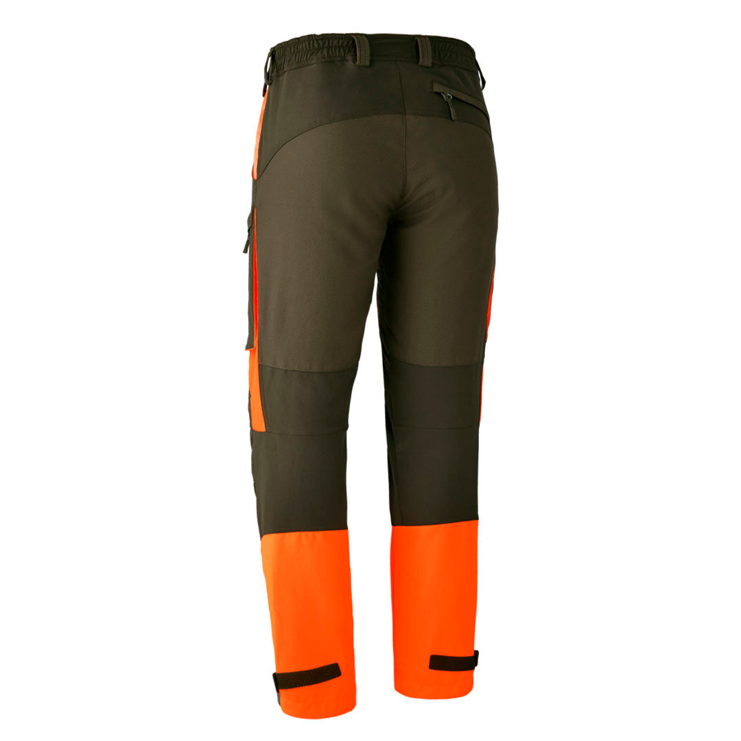 Entworfen mit einer leuchtenden Orange-Grün-Mischung, um die Sicherheit zu gewährleisten, die ein wichtiger Aspekt jeder Jagdaktivität ist. Die vorgeformten Knie, der elastische Bund, die 4-Wege-Stretchbereiche und die verstellbaren Knöchel mit Riemen und Klettverschluss ermöglichen eine bequeme Passform bei gleichzeitiger Beweglichkeit.