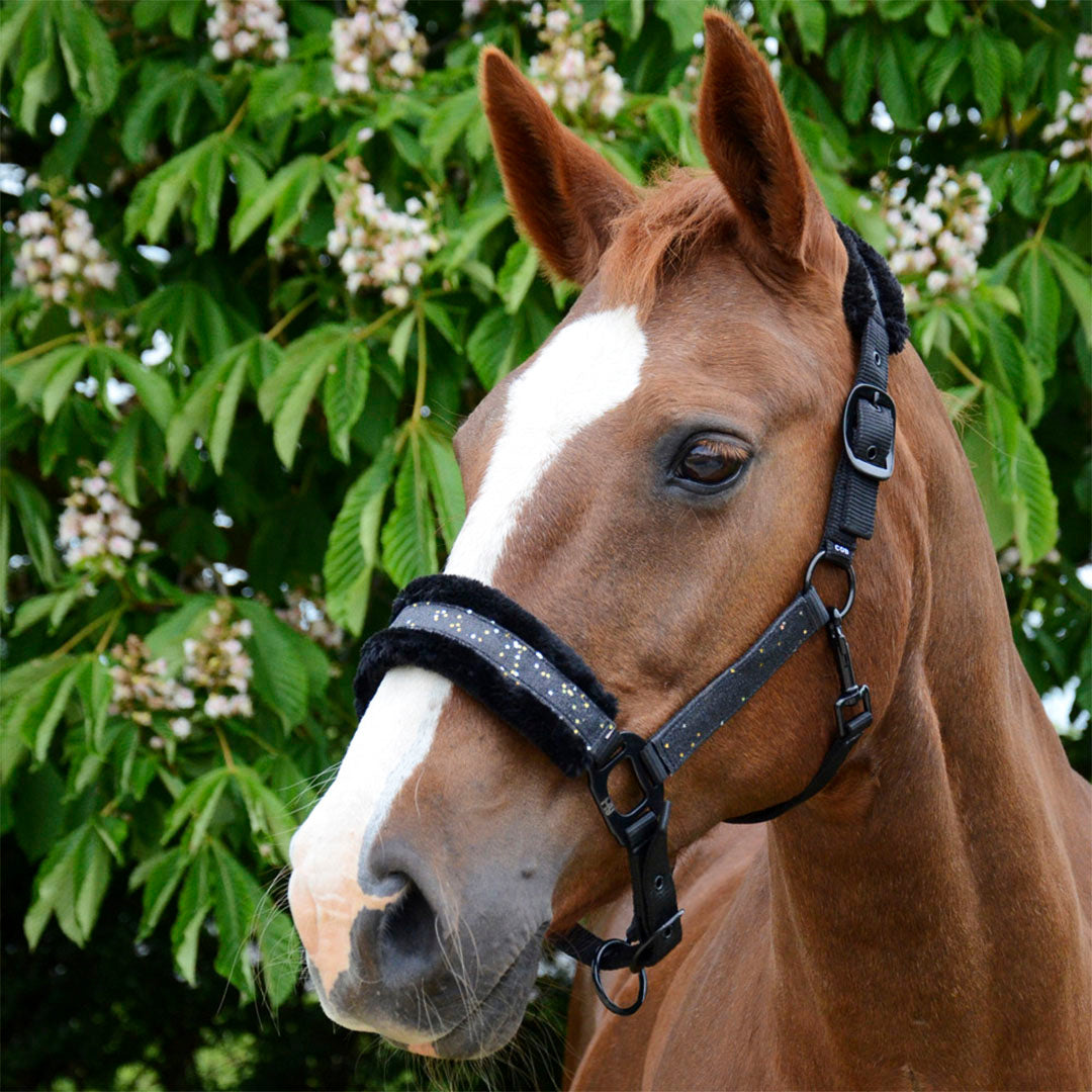 Die zusätzliche Kunstfellpolsterung um die Nase und das Genickstück sorgt für mehr Komfort für Ihr Pferd.