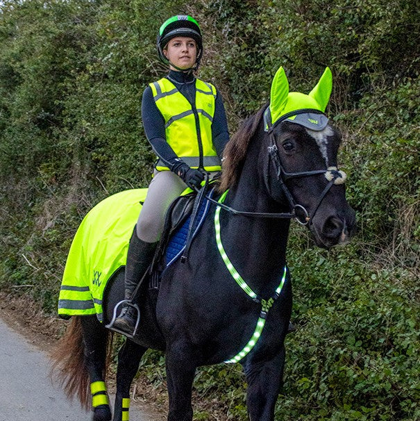 Woof Wear’s LED Neckband is essential for road safety, featuring three strips of LED lights with 10 light settings. Powered by three batteries in the centre, the neckband has two settings, including static and flashing and various colour options to suit light conditions. Adjustable neck and girth straps ensure a secure fit for most horses. The flashing and moving lights of the neckband ensure riders can be seen faster by incoming traffic, providing peace of mind and optimal visibility.