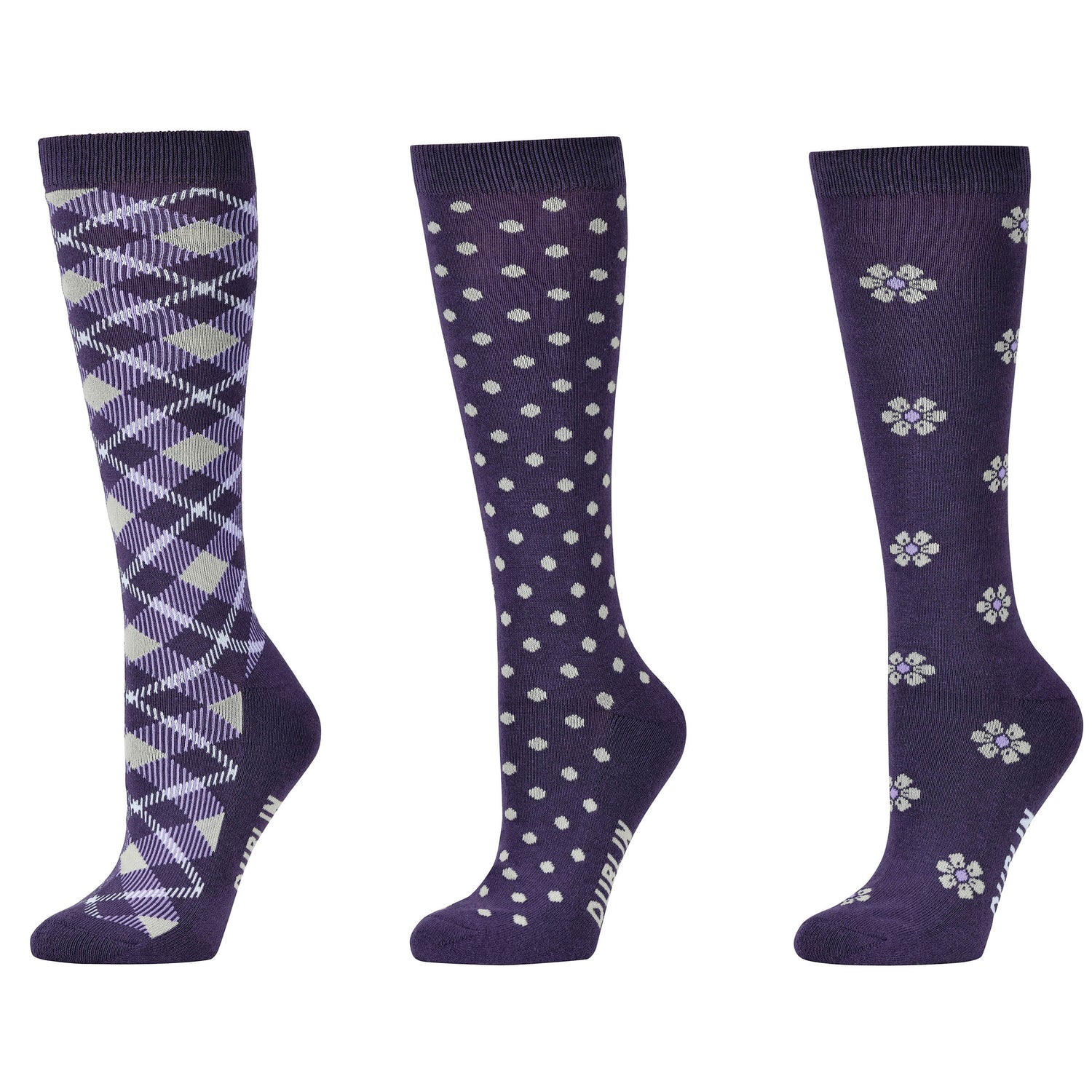 Ajoutez du plaisir et de la couleur à votre tenue d'équitation avec les chaussettes Dublin 3 Pack. Ces paquets de chaussettes hautes ajoutent de la couleur et du confort à n'importe quelle tenue, fabriqués à partir d'un coton extensible naturellement respirant, vos pieds resteront à l'aise toute la journée. Un pack de 3 paires de chaussettes aux motifs assortis.
