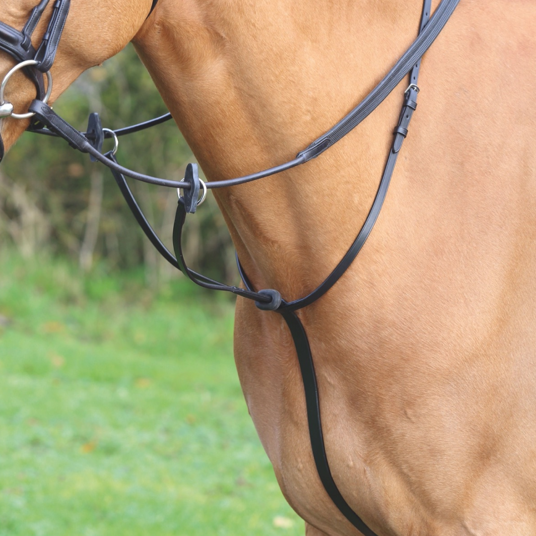 Assortie au reste de la gamme, la martingale est réglable autour du cou et au niveau du contre-sanglon, vous permettant ainsi de l'adapter à chaque cheval.
