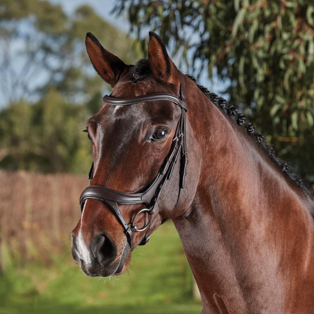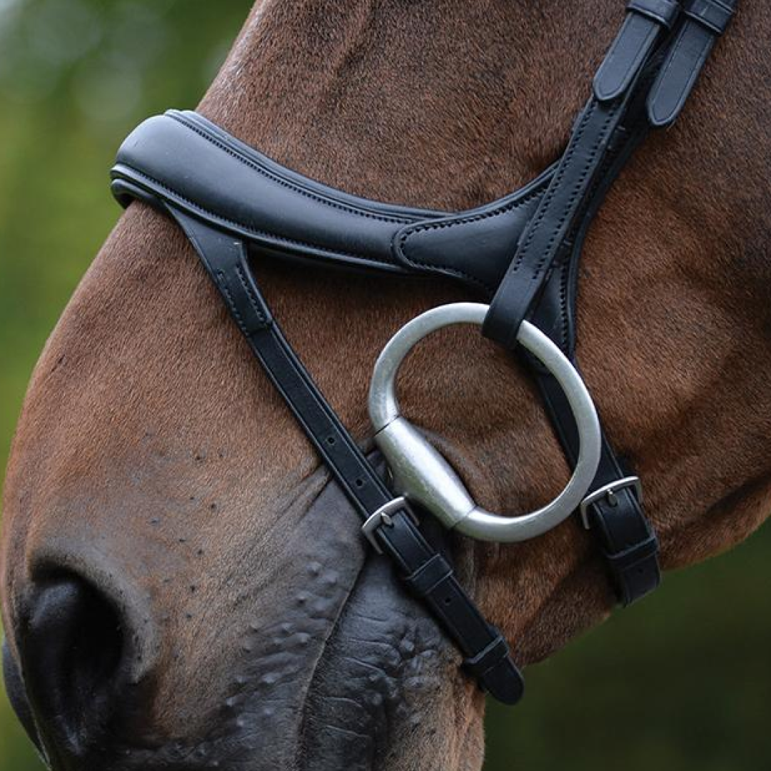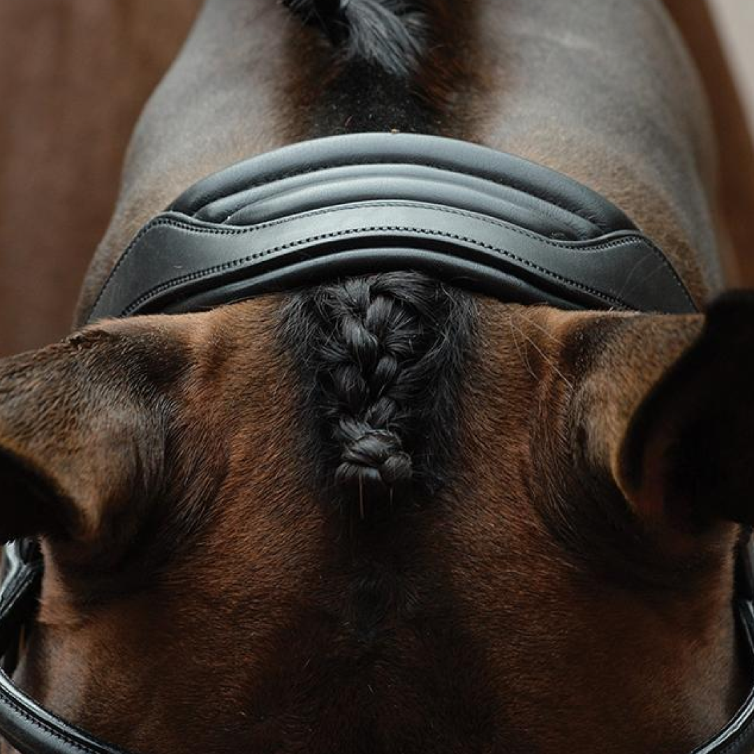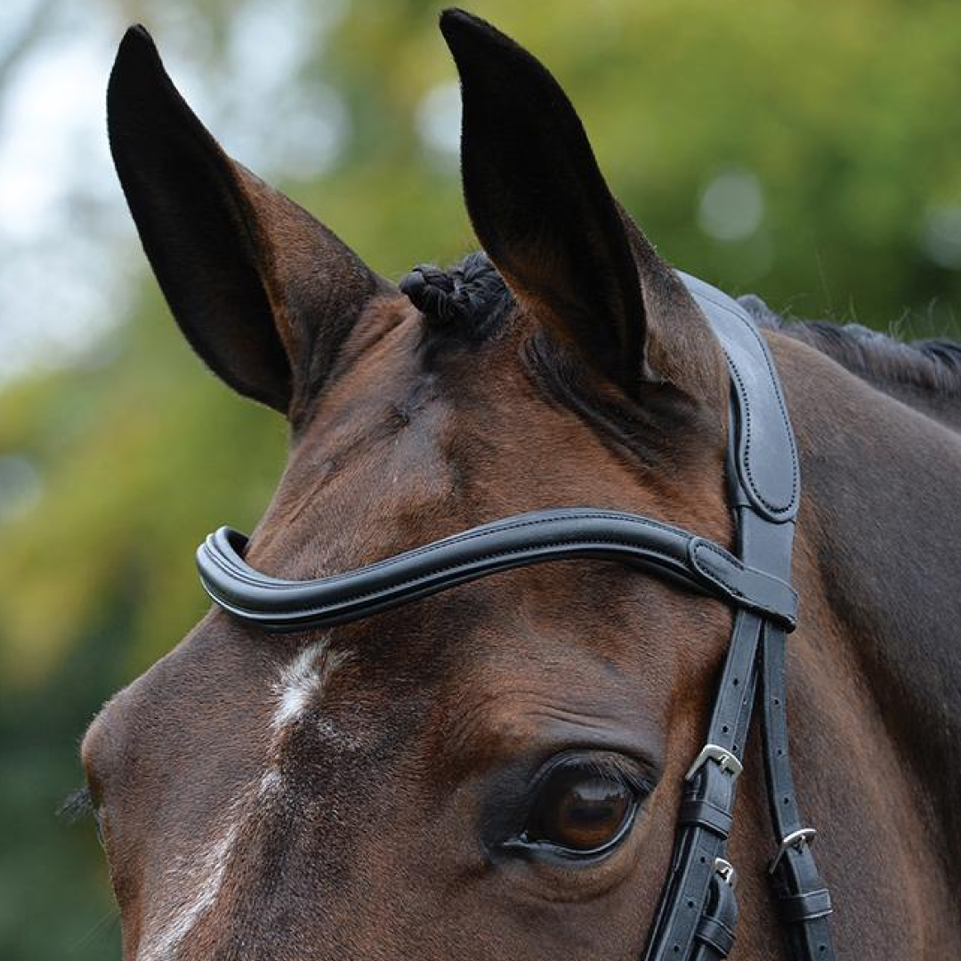 Fabriqué à partir de cuir européen de haute qualité. Ce casque anatomique est doté d'un rembourrage super doux partout et est de forme plus large entre les oreilles du cheval pour répartir la pression uniformément et confortablement et un nez incurvé qui contourne tous les principaux nerfs faciaux sensibles et offre un confort et une protection ultimes.