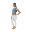 Cette chemise de concours sophistiquée est magnifiquement conçue avec cinq boutons-pression en cristal sur la patte de boutonnage et une couleur blanche contrastante avec des détails en soie. Fabriquée avec le tissu performant de pointe, Dri-tex, cette chemise sans manches respirante repousse l'humidité du corps pour un séchage rapide et un ajustement confortable. Le logo Hy est brodé en argent sur la poitrine pour une finition élégante.