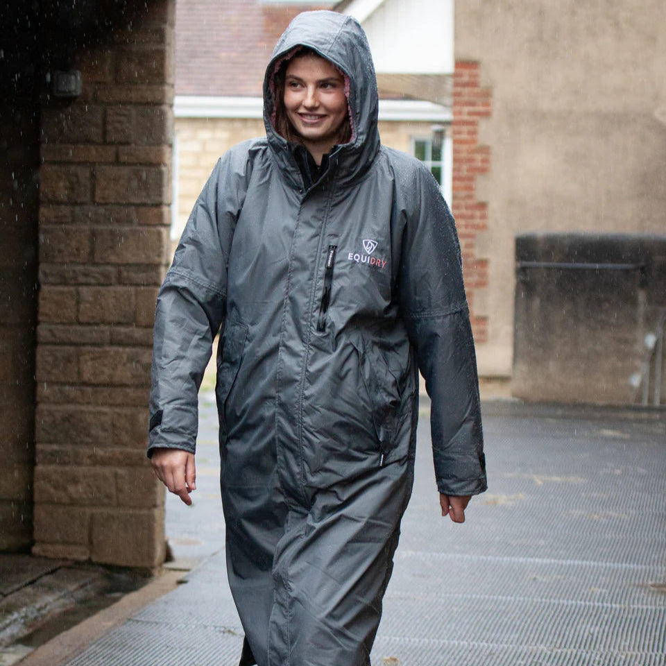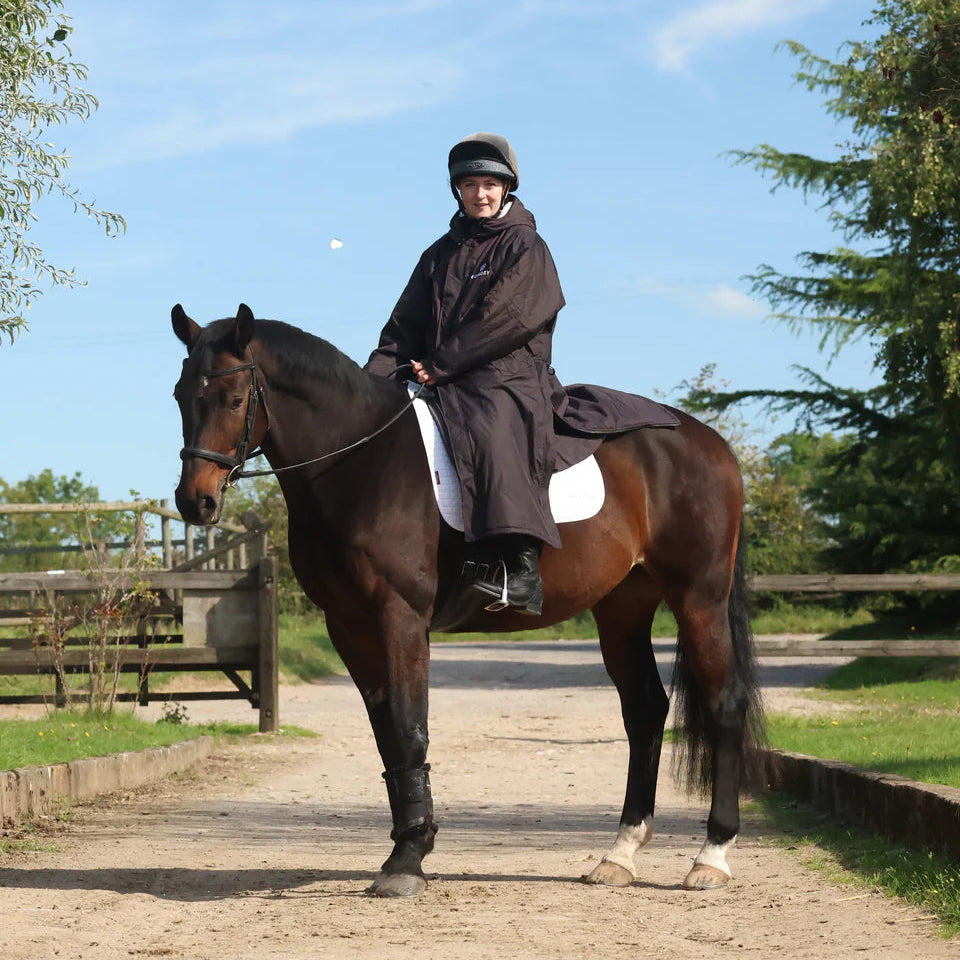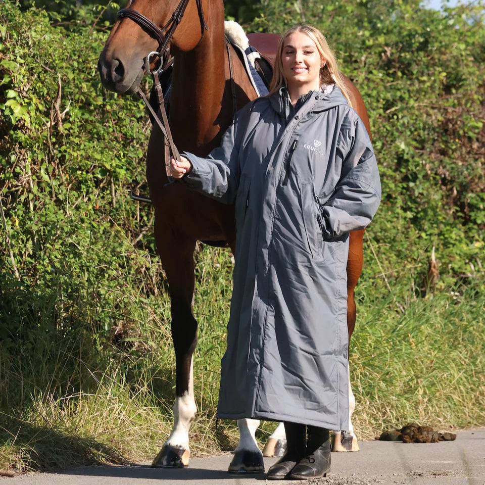 The EQUIDRY Women’s Thick Fleece Evolution Jacket is designed to keep you dry in all weathers, with an outstanding 20,000mm waterproof rating and breathable material. Its oversized, full-length cut with thick fleece lining provides warmth and freedom of movement, while leaving room for layering or wearing a body protector. Riding side zips with hidden storm skirts offer extra leg coverage in the saddle, ensuring comfort and protection throughout. Please refer to the detailed sizing guide to ensure the perfect fit and enjoy reliable performance with every ride.
