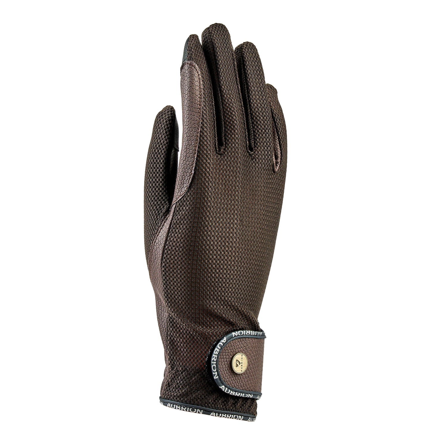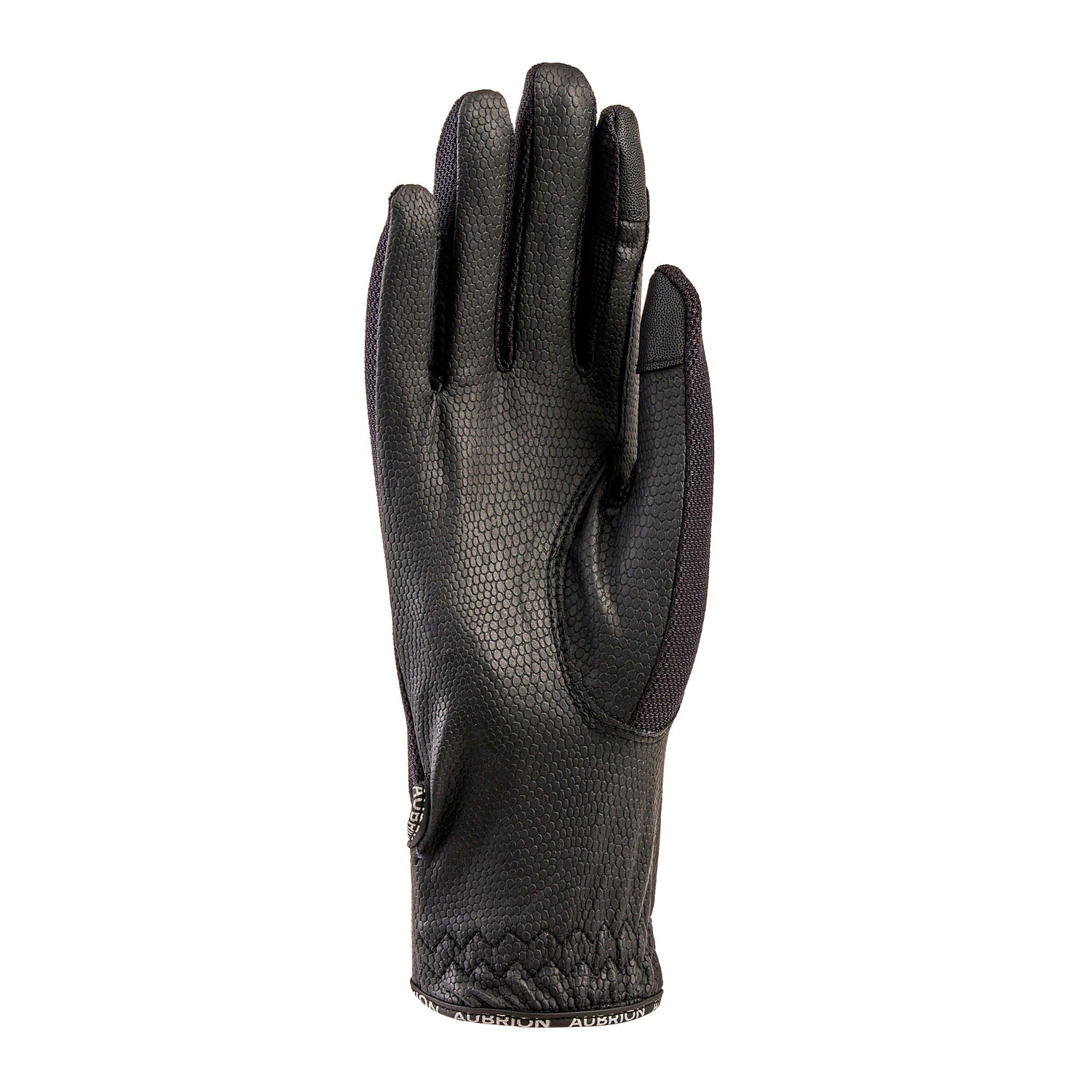 The Aubrion Aero FlexFit gloves keep a show-smart look to your warm weather riding. Open knit backs release heat and allow free flow of air to keep hands comfortable. Palm side, FlexFit fine synthetic leather features an attractive faux snake skin texture and offers a LiteGrip feel for greater rein contact.
