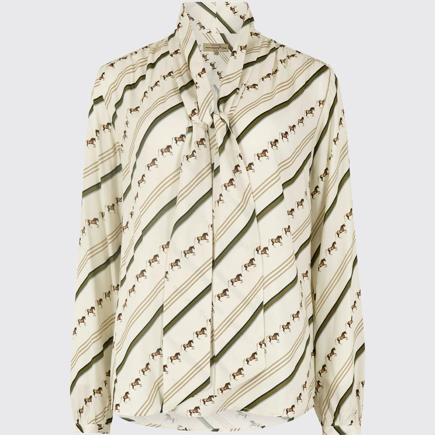 Bring a touch of vintage glamour to your wardrobe with the Dubarry tie neck equestrian print Sweetalison blouse. Refine a denim and flat boot combination or team with tailored tweed and a Sullivan knee-length belted suede skirt for a head turning, elegant profile.