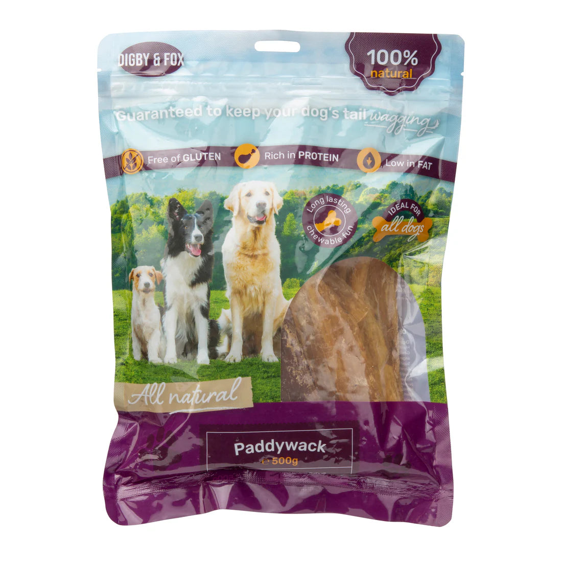 Paddywack comes from the strong elastic ligament that holds up the head of the buffalo. This tough chew gives your dog the ideal jaw work out while keeping them occupied for longer. The Digby & Fox natural raw hide range provides your dog with mental stimulation and supports dental health. They offer a high protein, low fat, nutritionally rich supplement to your dog’s diet.
