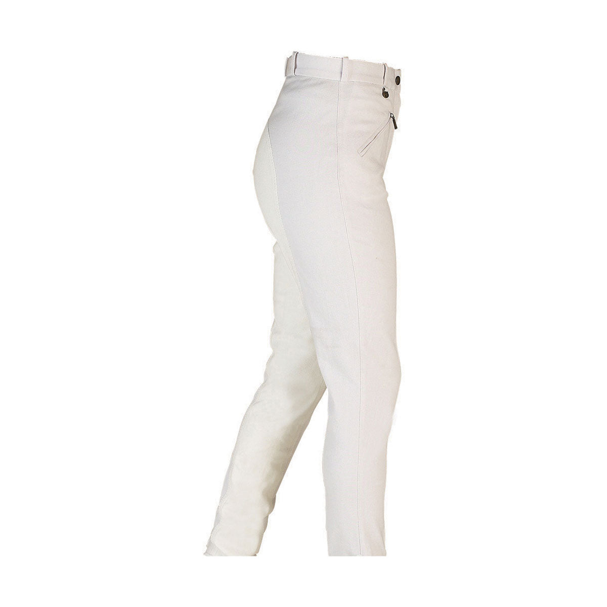 Faites une déclaration de style aujourd'hui ! Fabriqué à partir de tissu Agate Cool contenant 30 % de polyamide, 63 % de coton et 7 % de Lycra avec un siège en cuir extensible très flatteur et offrant une adhérence pratique tout en conservant la résistance et un ajustement confortable. Conçu à la mode avec des coutures en fil contrasté. Fermetures velcro aux chevilles Poche avant discrète Braguette entièrement zippée Passants de ceinture en cuir contrasté et coutures et finitions renforcées. Lavable en machine à 40 °C. Longueur de jambe : Régulier. Celui à voir en cette saison ! Gagnant de votre guide d'équipement pour chevaux 2010.