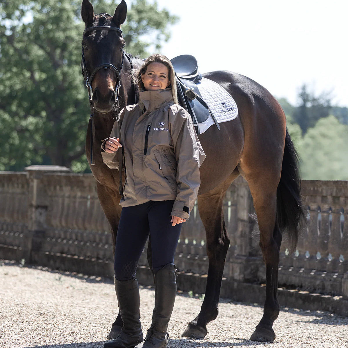 The EQUIDRY Shortie is a short, blouson-style jacket designed with advanced EQUIGUARD® technology, offering an impressive 20,000mm waterproof rating for outstanding protection against the elements. Its breathable mesh lining provides comfort in warmer weather while also allowing versatility for layering in colder conditions. The oversized, unisex fit ensures freedom of movement with ample room for additional layers or a body protector.