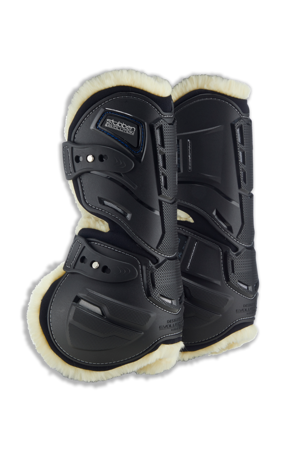 Traditional soft shell and leather boots have always offered protection from brushing, but the down side was limited protection from a strike. This led to many Hard Shell designs which offer this protection, but due to the nature of the “hard shell” they limit the natural range of movement of the horse. The Stübben & Evolution Hybrid range has been developed to be the natural Evolution of these products and the ultimate Hybrid combining the best of all designs which have come before.