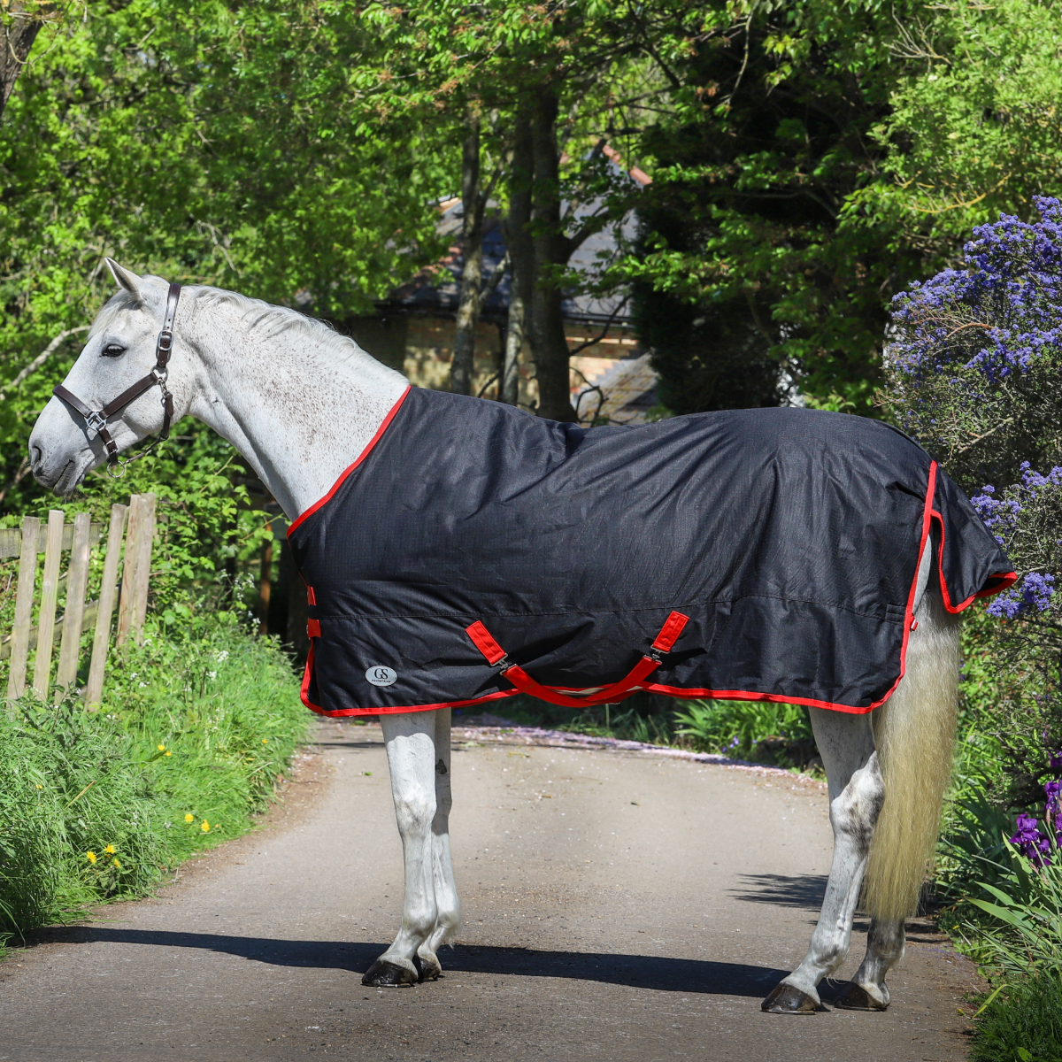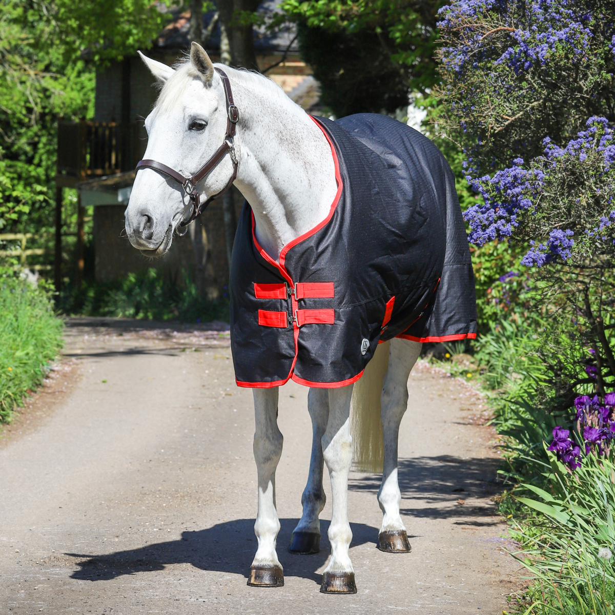 Cette couverture 100 % imperméable avec un garnissage de 200 g est idéale pour garder votre cheval au chaud et au sec.