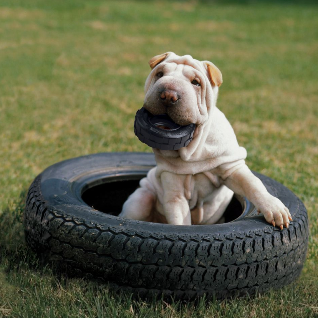 Un pneu à mâcher durable conçu pour offrir une expérience de mastication ultime. Les parois latérales de forme unique et la bande de roulement extérieure épaisse créent une barrière élastique super durable. Les flancs sont conçus pour doubler et rebondir lorsqu'ils sont compressés pour offrir une expérience de mastication active et les pneus sont parfaits pour les jeux de récupération rebondissants.