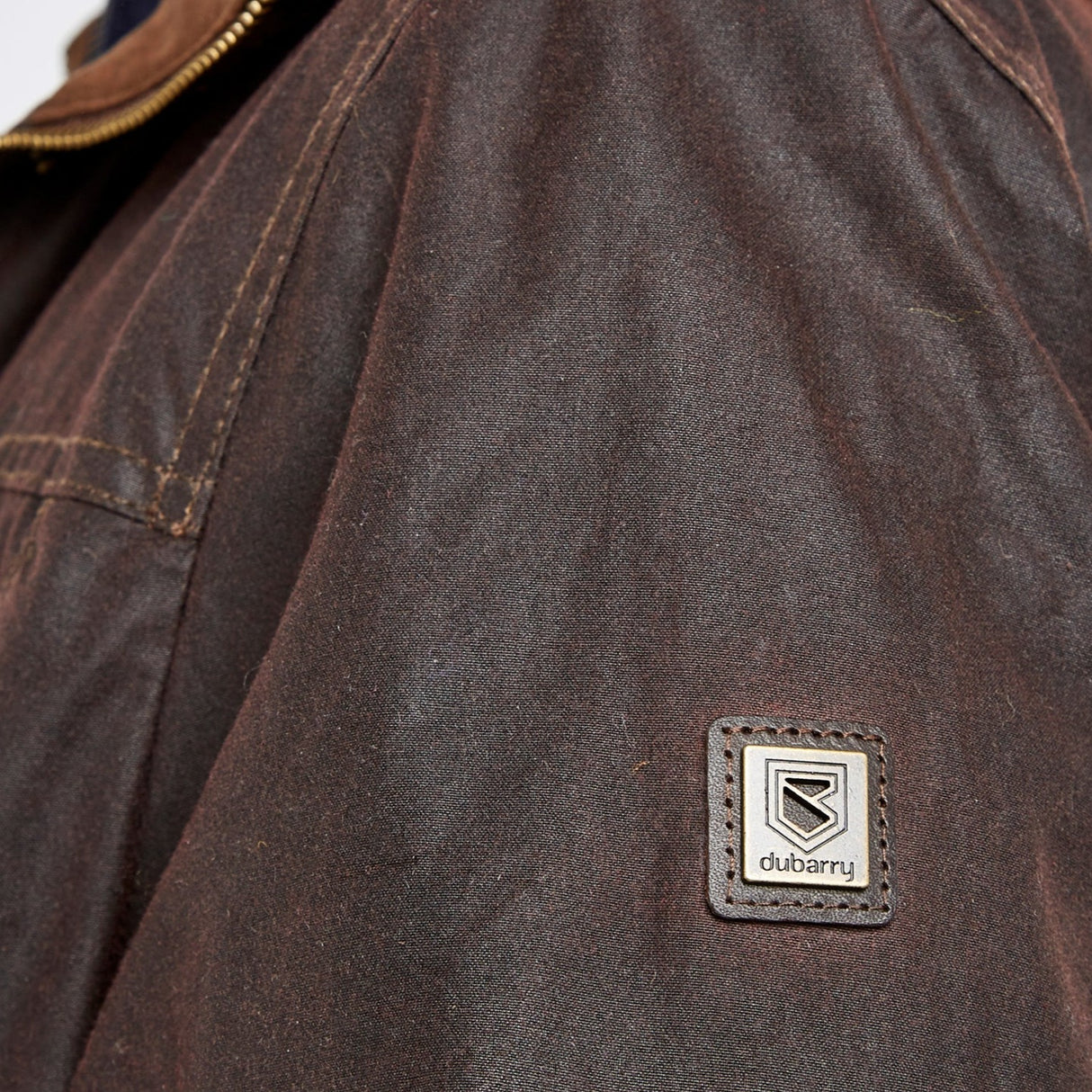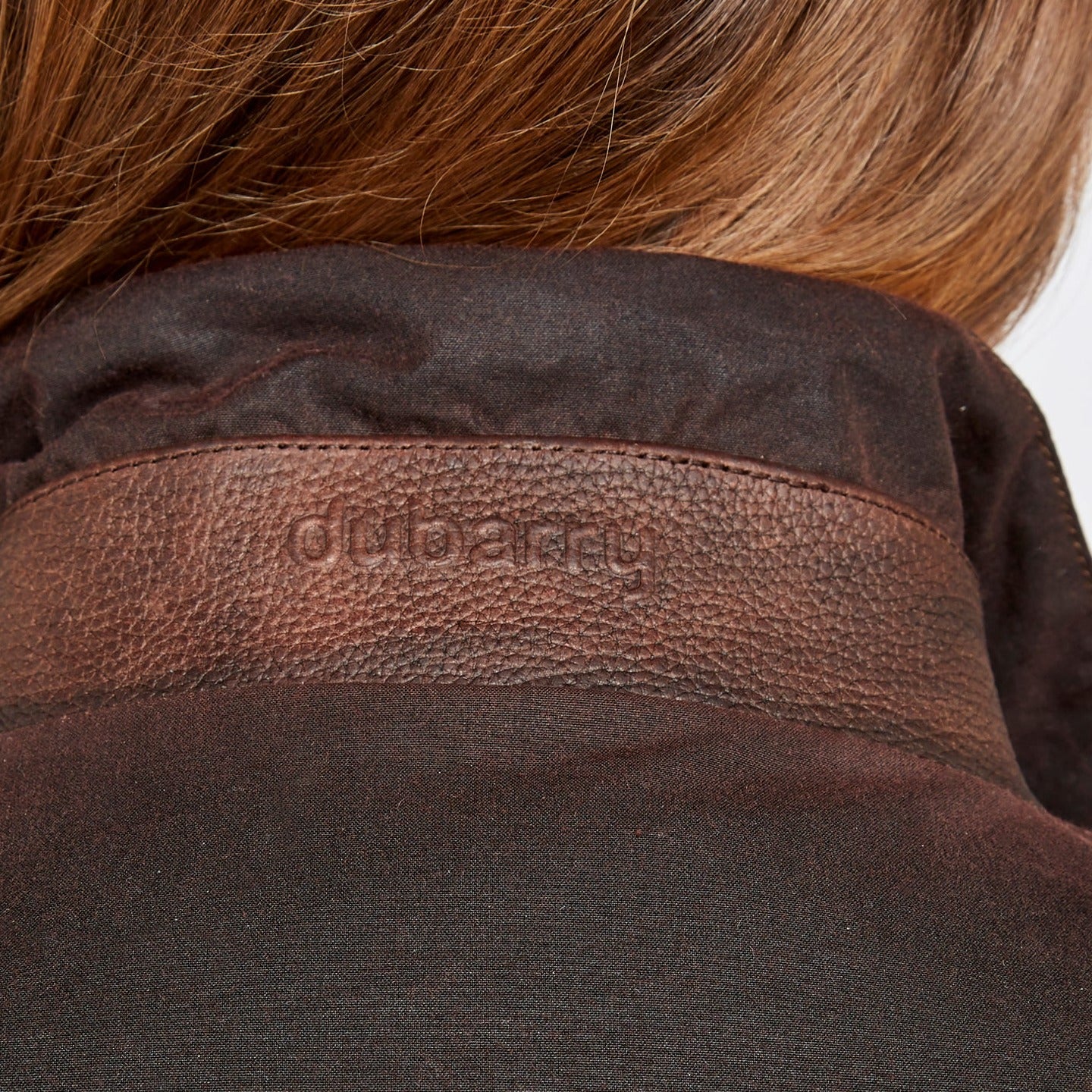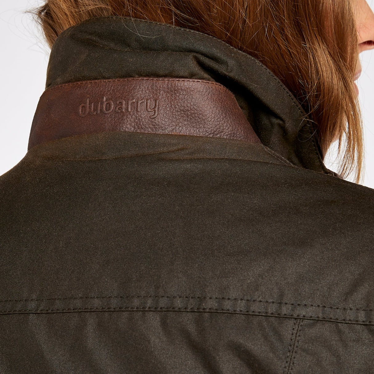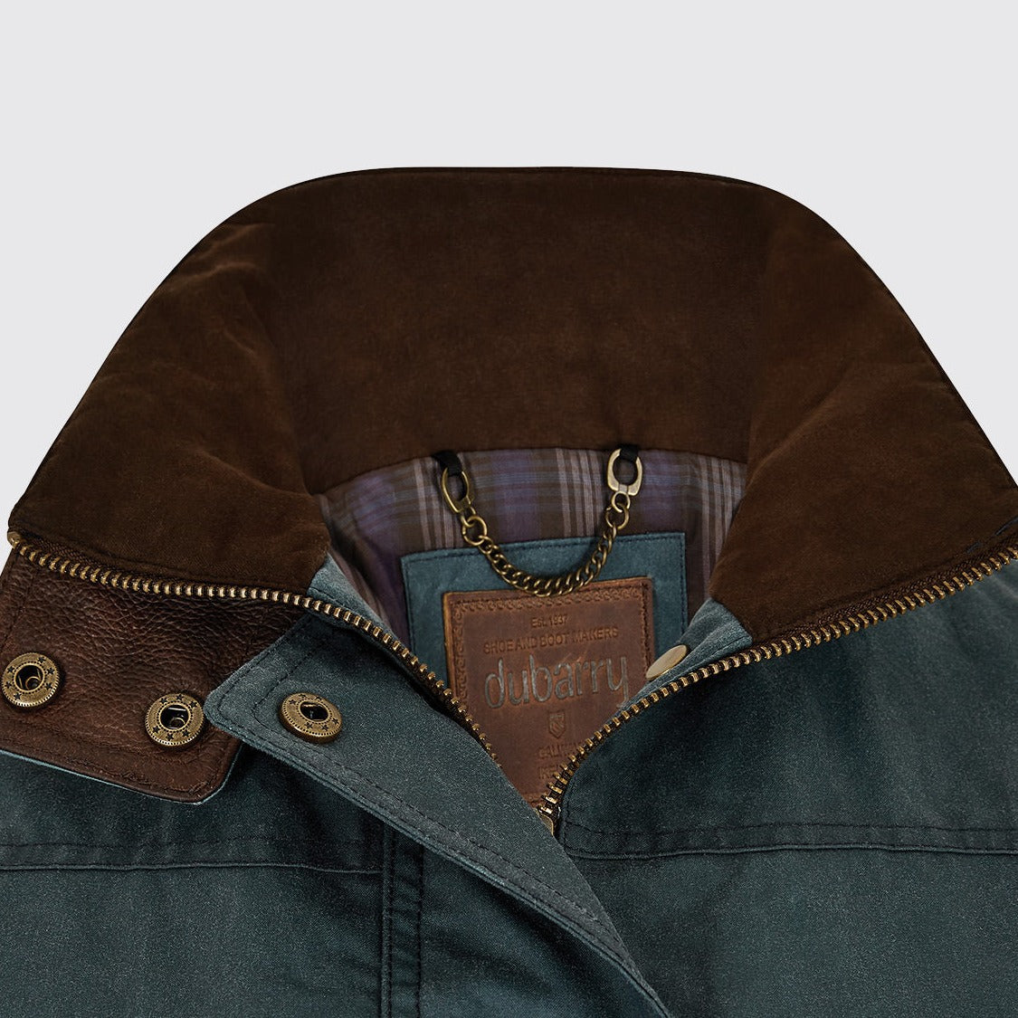 The waxed cotton Dubarry Mountrath is a warm winter jacket with PrimaLoft fill and water repellent finish - perfect for braving wet and windy days in. The leather trim and branded stud poppers lean into a traditional, elegant aesthetic while the stud-fastened faux suede collar and soft, flattering tailoring add a slick urban flair to this comfortable country style.