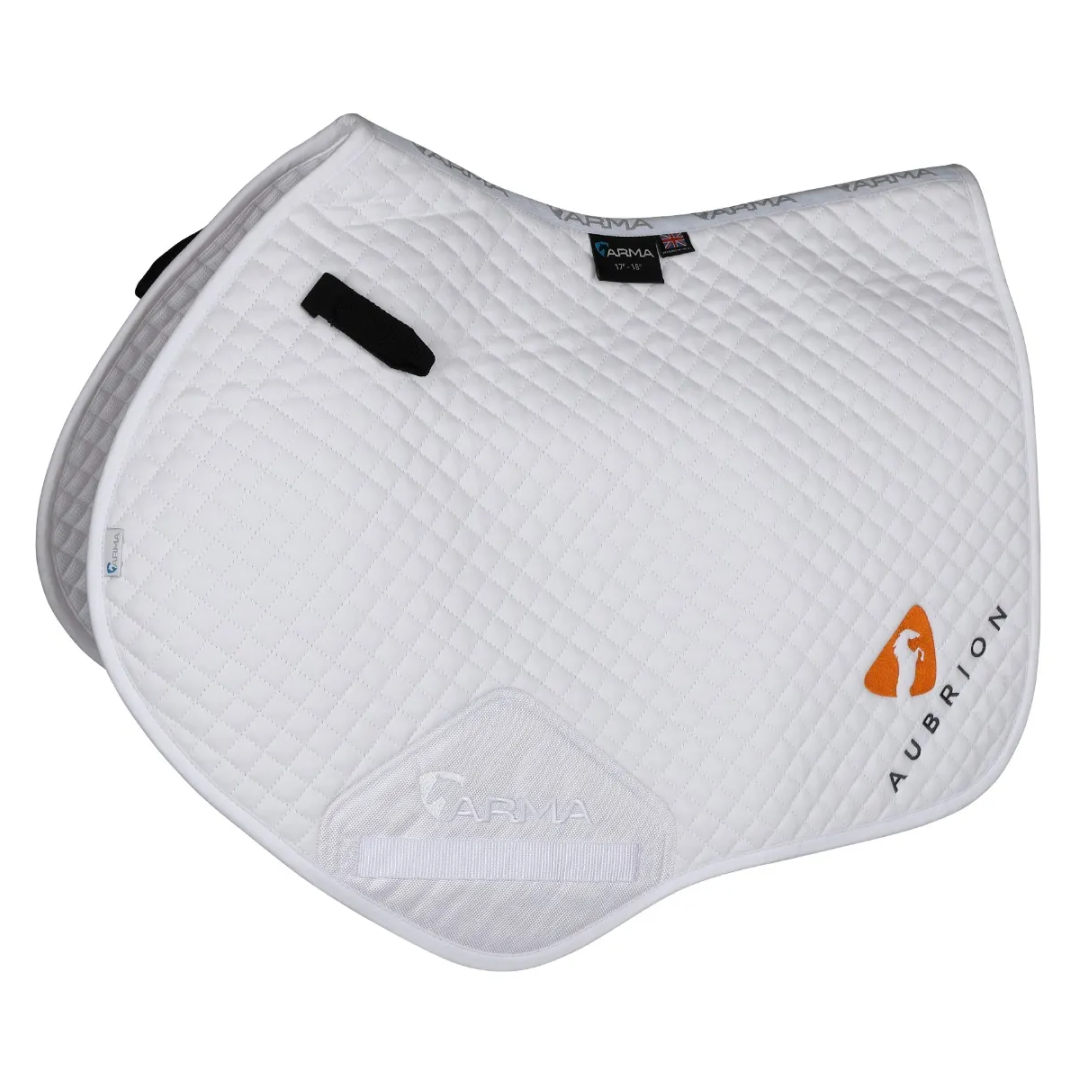 Le tapis de selle Shires Aubrion Branded Jump est intelligemment marqué et utilisé par l'équipe #shiresprorider. Extérieur respirant et anti-boulochage 100 % coton. La doublure ULTRA DRI ZONE évacue instantanément la transpiration du cheval pour réduire les risques de frottements et augmenter le confort. Guides de sangle et sangles élastiques avec anneau en D pour une sécurité pratique. Contre-sanglons résistants.