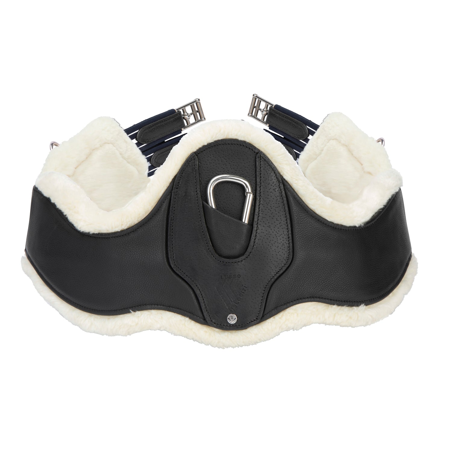 A sleek, carefully engineered design keeps a refined feel. Strong and hardwearing outer leather flexes but resists stretching for longevity. Butter soft calf leather lining is forgiving against the body. Pressure dispersing padding gives the horse greater freedom of movement with improved range for advanced performance. Smooth, continuous girth edges are padded and curve away from the horse to prevent a harsh edge. Recessed central carabiner for easy attachment of training aids or breastplates. Short straps with high quality stainless steel fittings and twin girth roller buckles. Triple layer pressure alleviating elastic at either end. Eco-friendly vegetable tanned European leather.