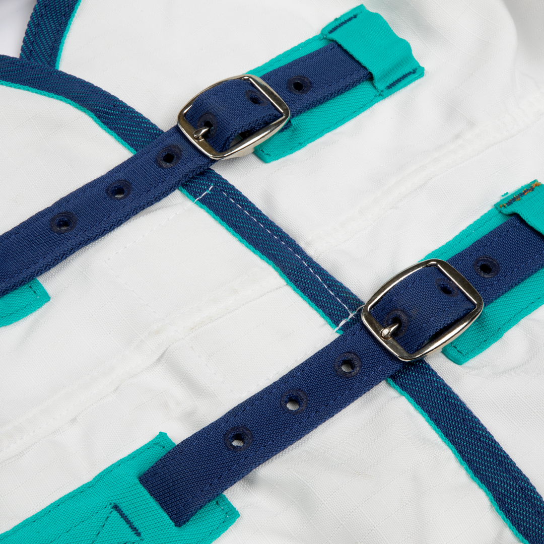 Fabriqué avec un tissu léger et ultra-respirant, le cou allongé avec des panneaux d'oreille extensibles, ainsi que de grands rabats ventraux offrent à votre cheval une couverture ultime, aidant à le protéger contre les insectes piqueurs, réduisant ainsi le besoin de démangeaisons.