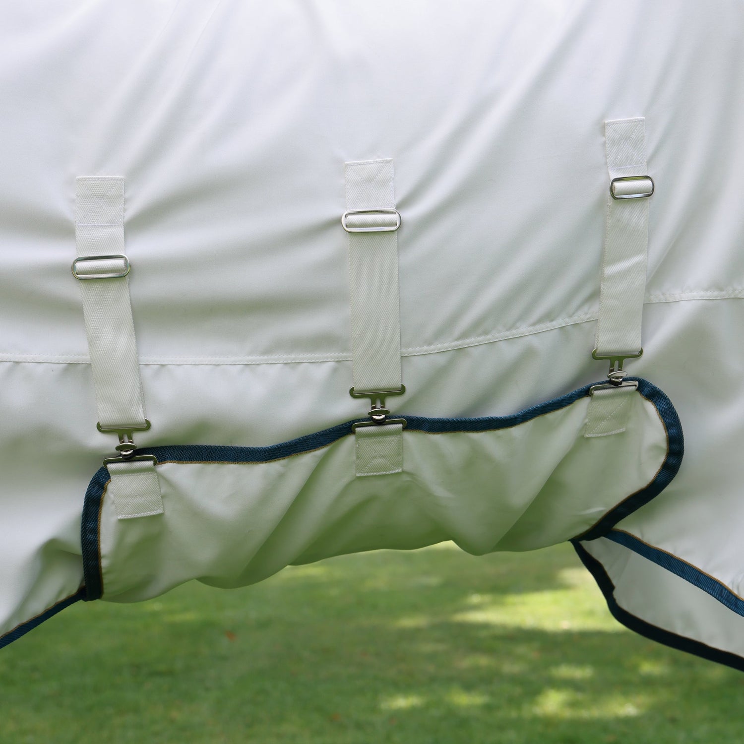 Les sangles doivent être suffisamment serrées pour maintenir la couverture en place, mais pas au point de déformer la forme de la couverture sur le dos du cheval. S'ils sont trop serrés, ils peuvent provoquer des points de pression autour de la poitrine et du garrot du cheval.