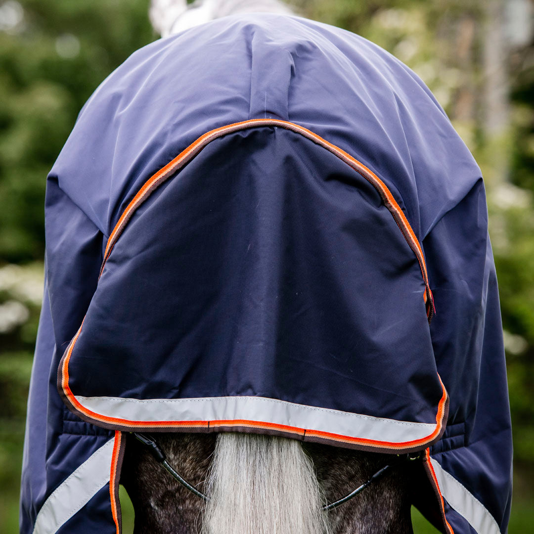 Couverture de participation Horseware Ireland Rambo Original 100 g avec arceaux de jambes - Bleu marine/orange/beige/marron / 5'6 est en rupture de stock et sera expédié dès qu’il sera de retour en stock.