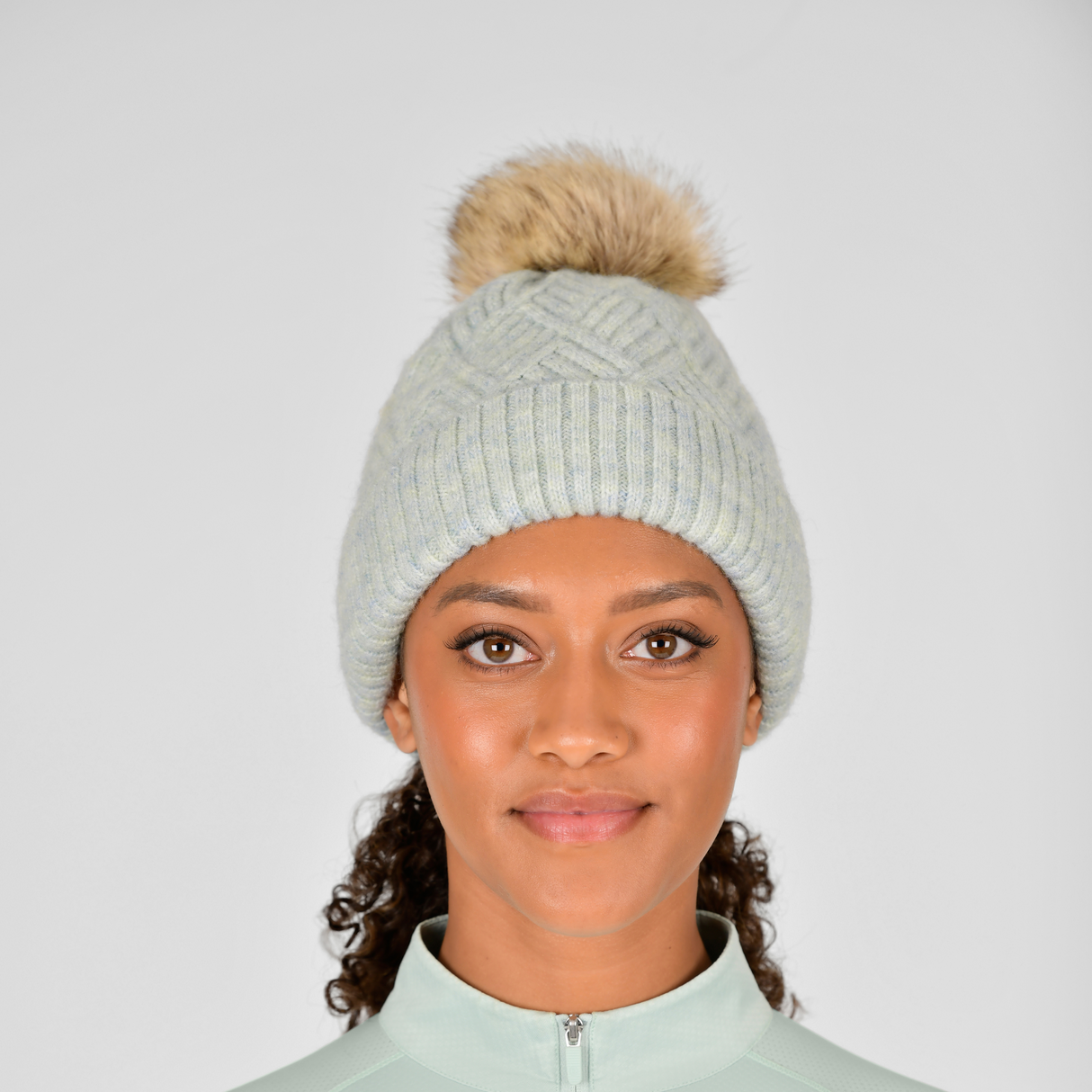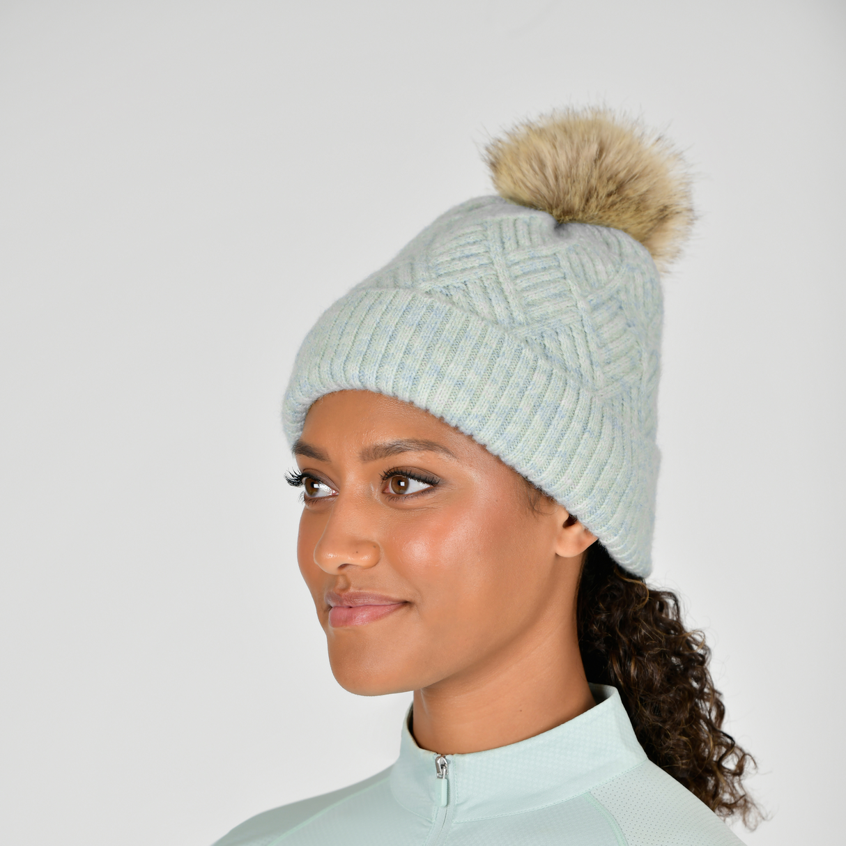 The Dublin Bea Beanie is the must have soft knitted hat for this winter. This beanie has a knitted outer in a textured marle knit design that has a soft fleece lining for additional comfort and warmth. Featuring a tone tone faux fur pom pom and knitted ribbed cuff for a customisable fit. Matching snood available.